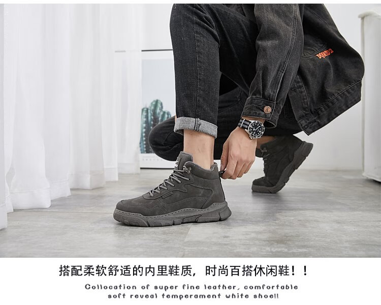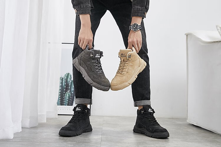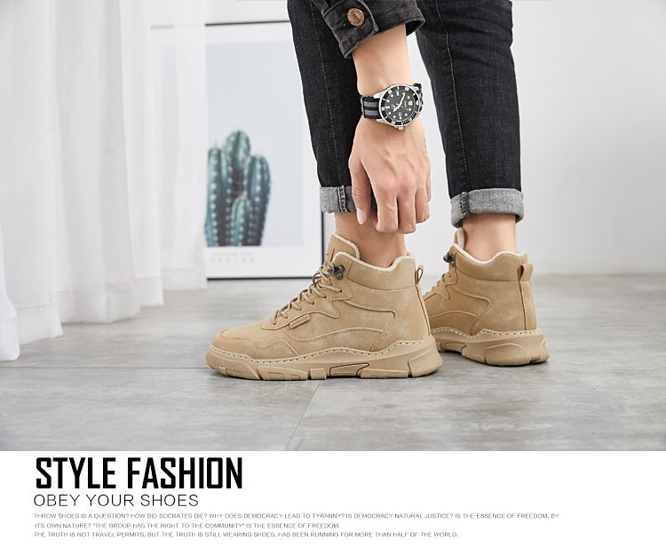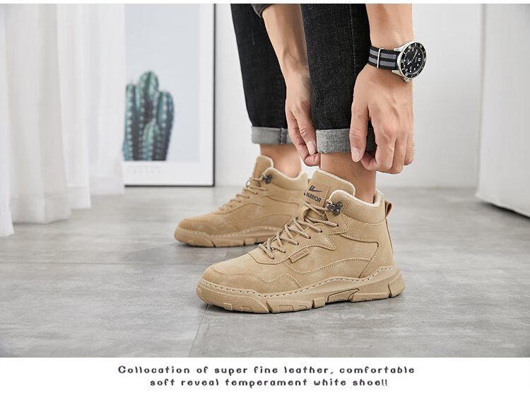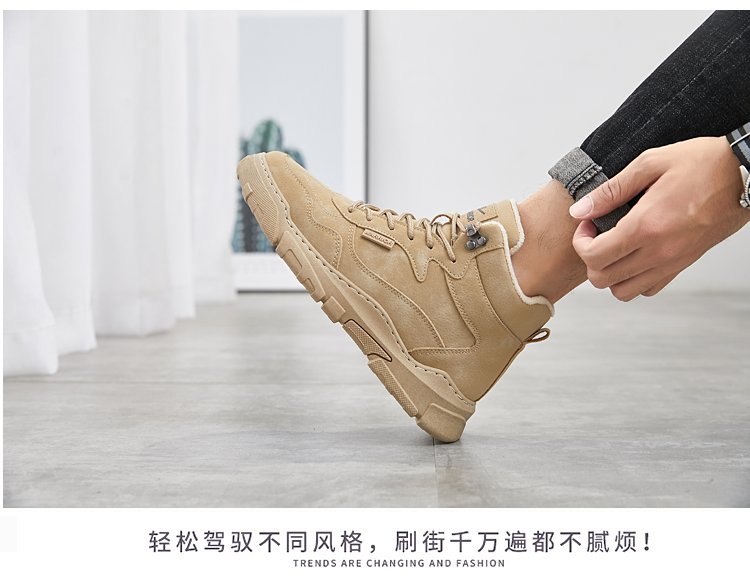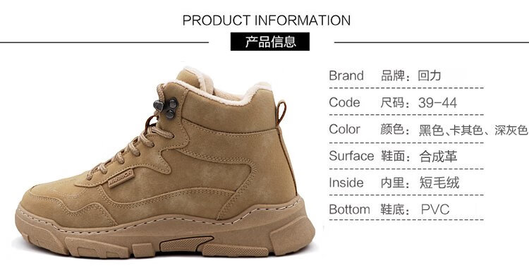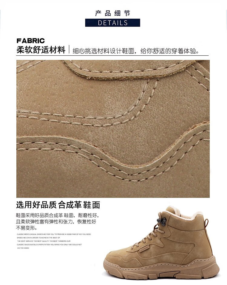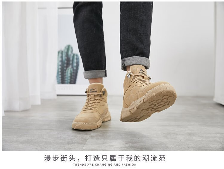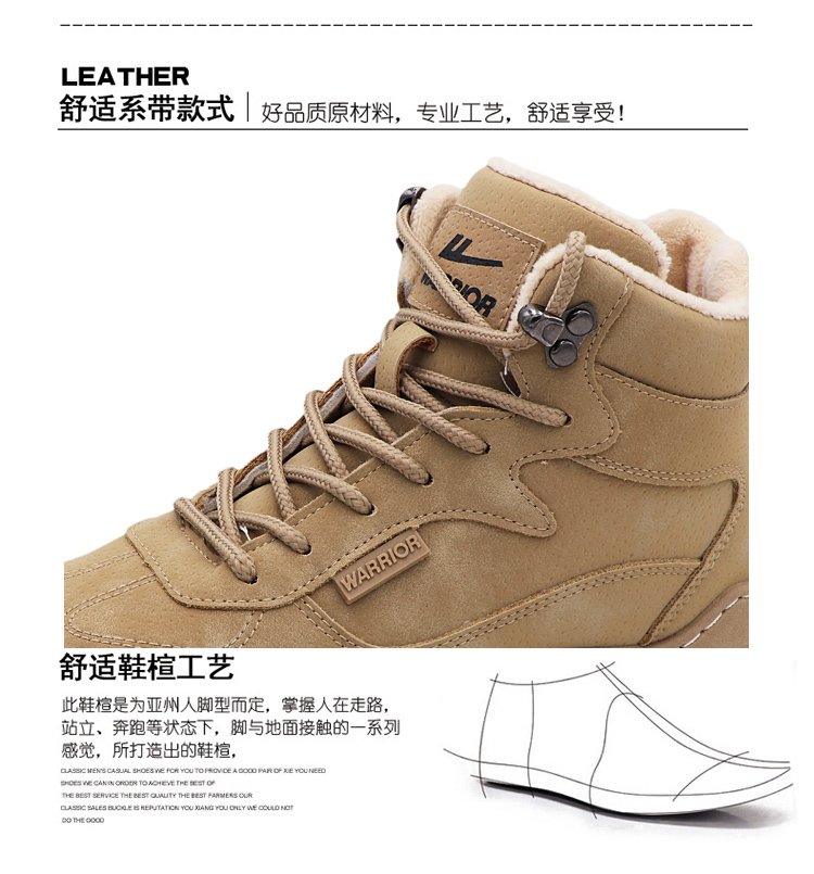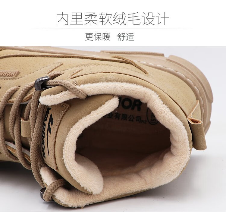 Warrior (Warrior) cotton shoes for men, thickened with velvet, warm Martin boots, casual snow boots WXP(WZ)-0167 Khaki 41