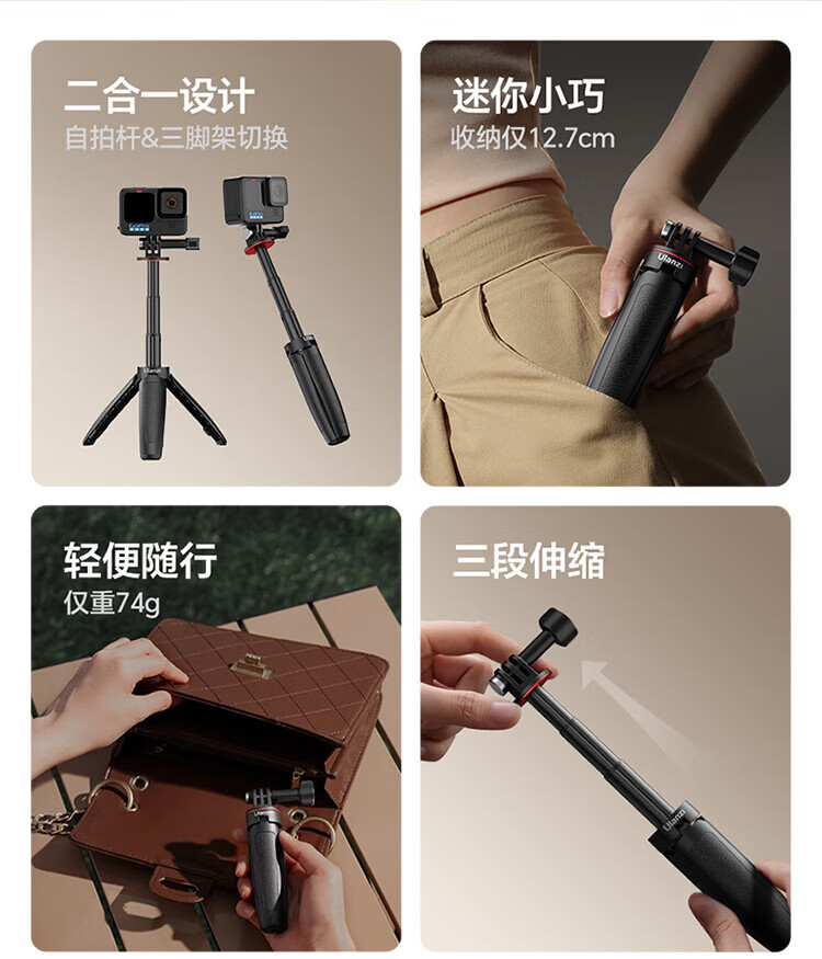 Ulanzi excellent basket MT-09 mini selfie stick DJI action5Pro 4 tripod handheld portable handle Osmo 360 action camera gopro13 12 bracket accessories