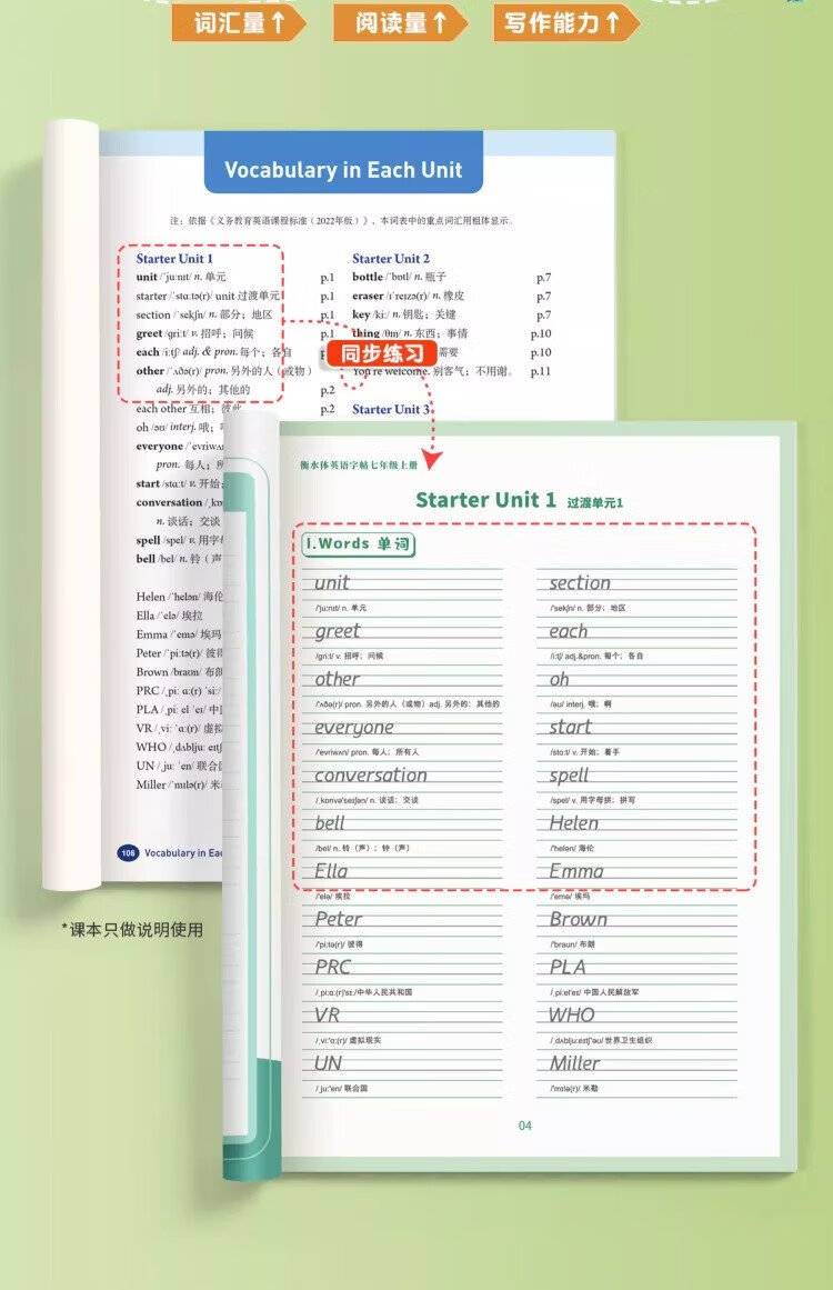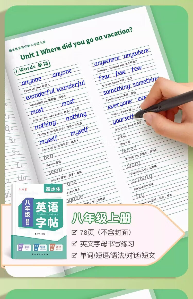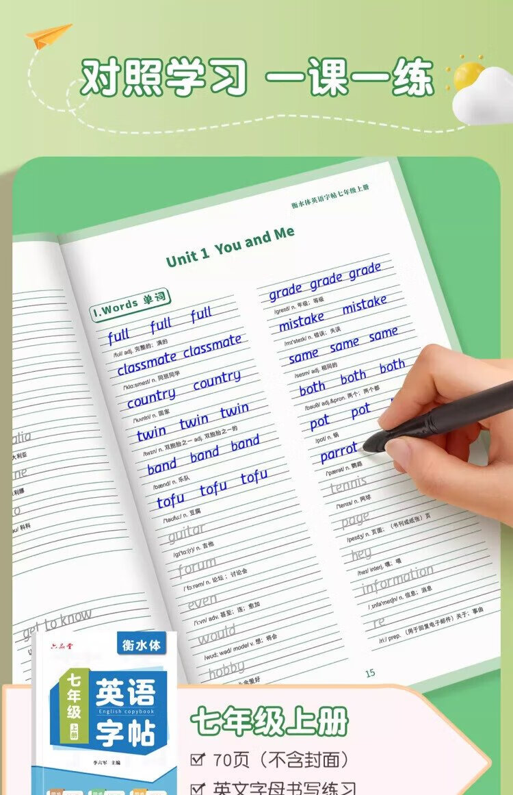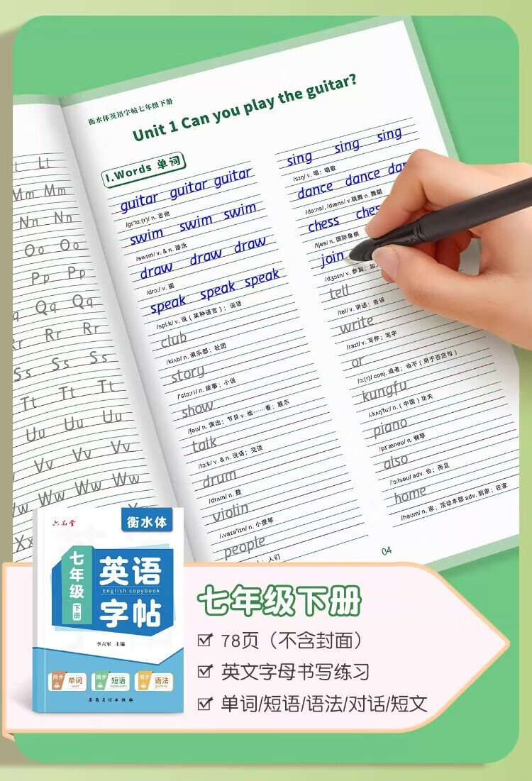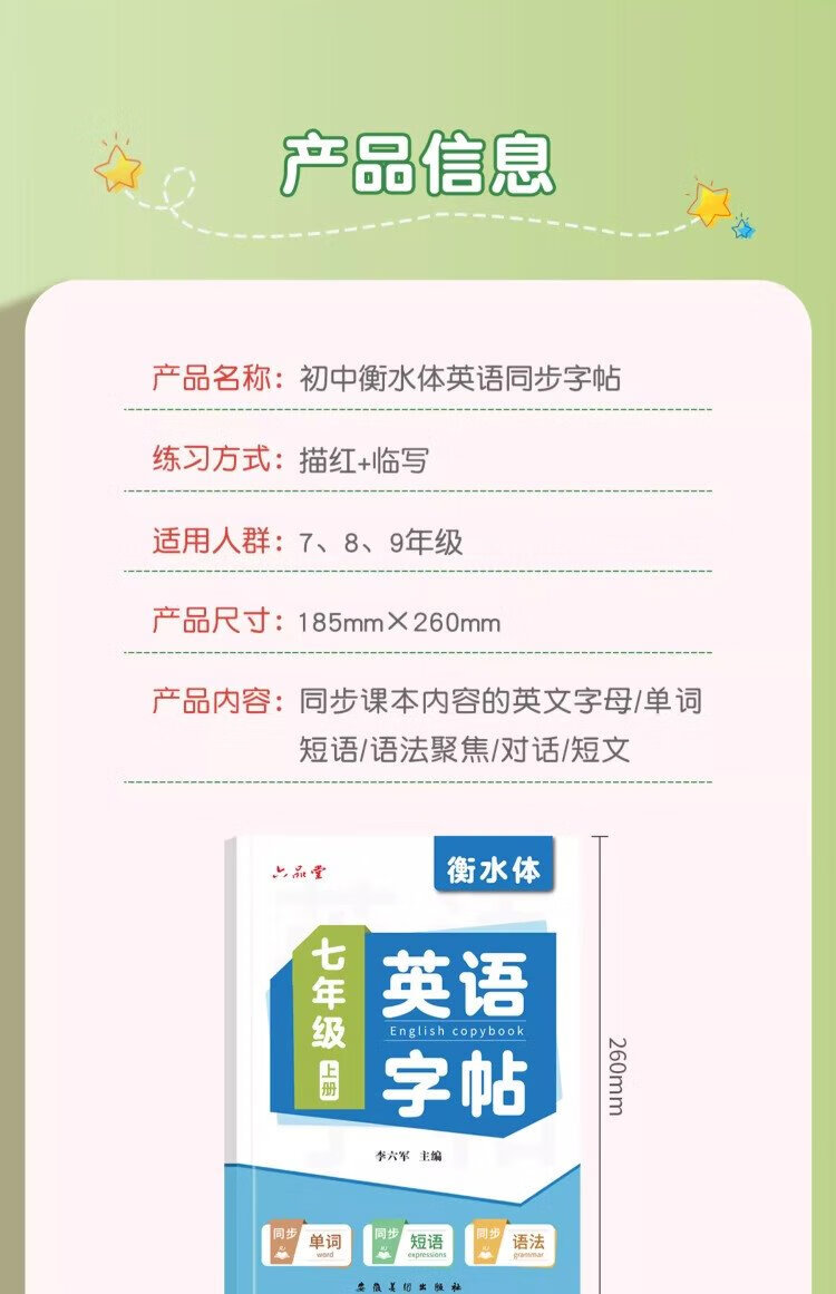 Liupintang seventh grade upper and lower volume English copybook Hengshui style English junior high school student Hengshui font synchronized textbook copy letter tracing red hard pen calligraphy pen practice middle school student copybook