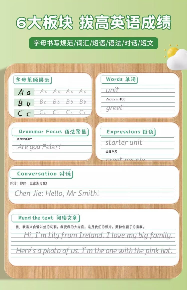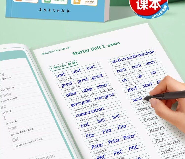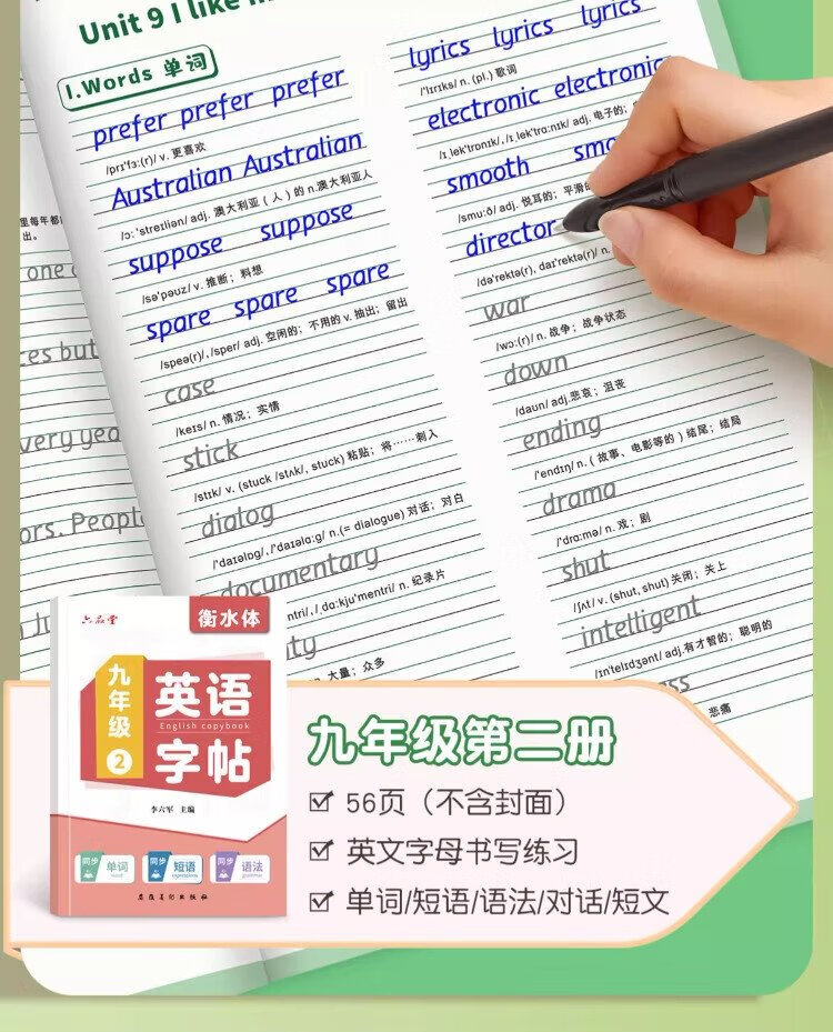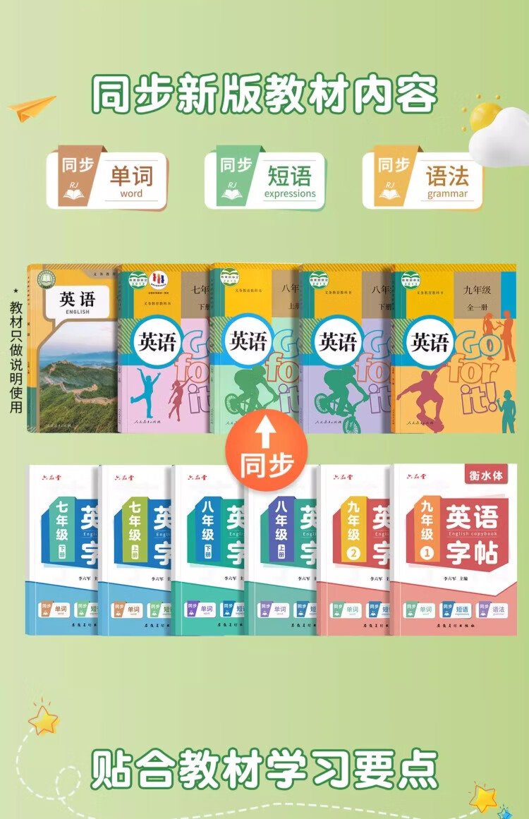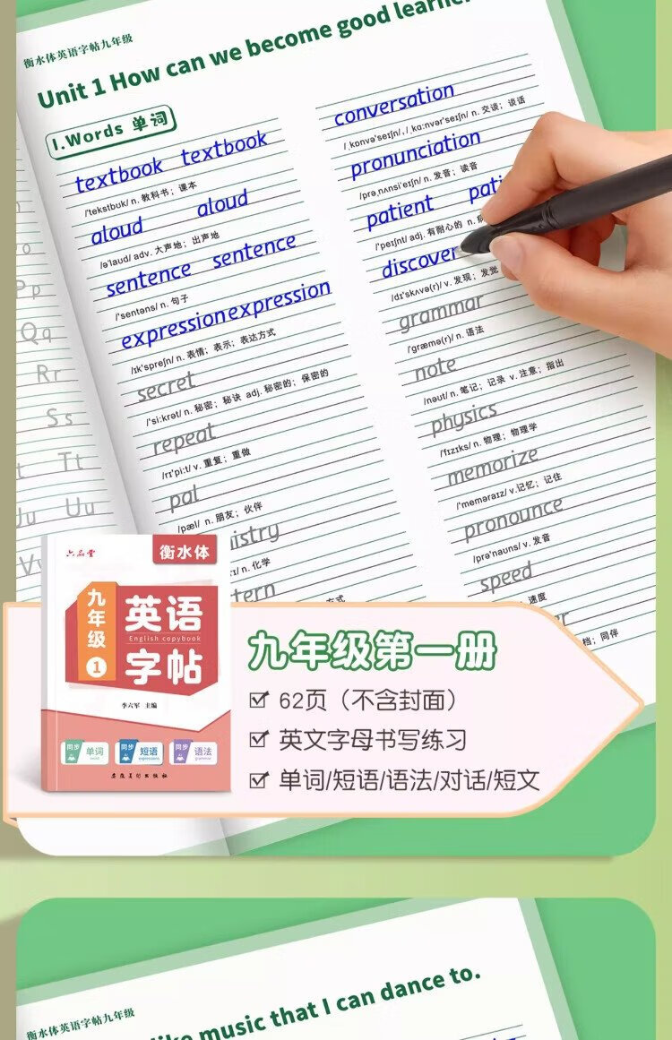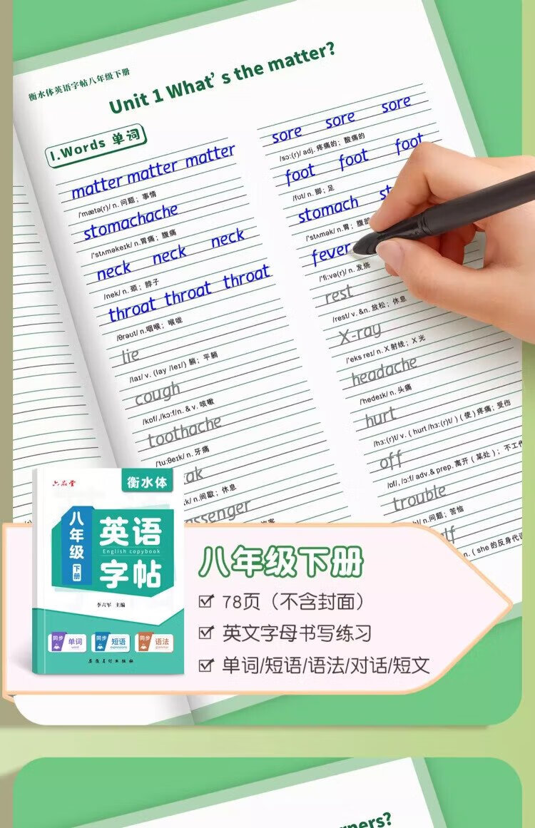 Liupintang seventh grade upper and lower volume English copybook Hengshui style English junior high school student Hengshui font synchronized textbook copy letter tracing red hard pen calligraphy pen practice middle school student copybook