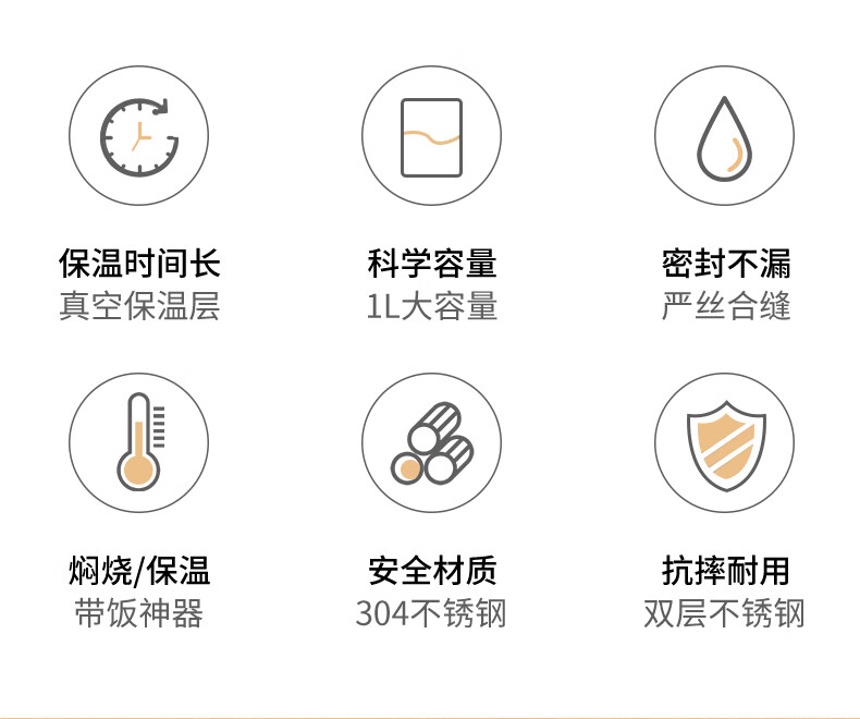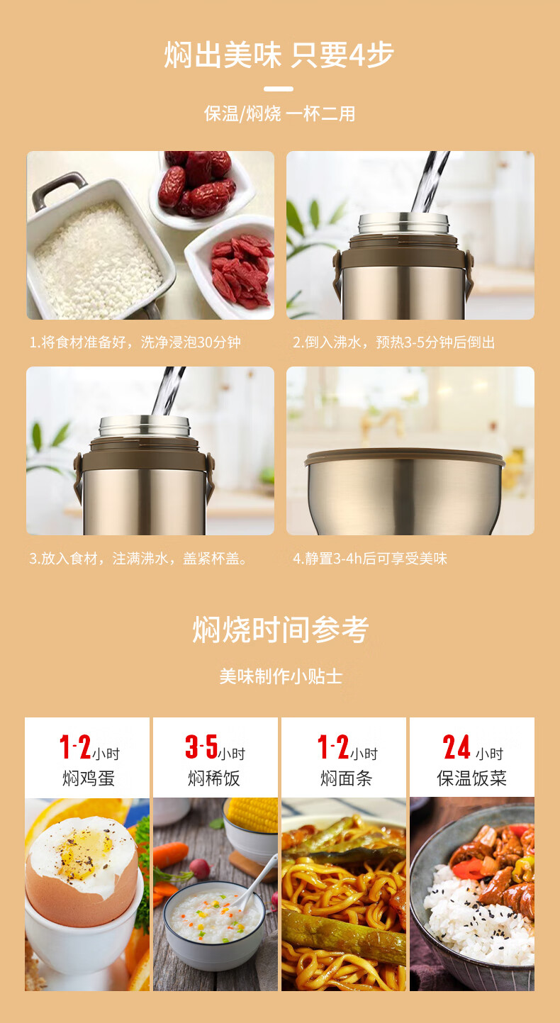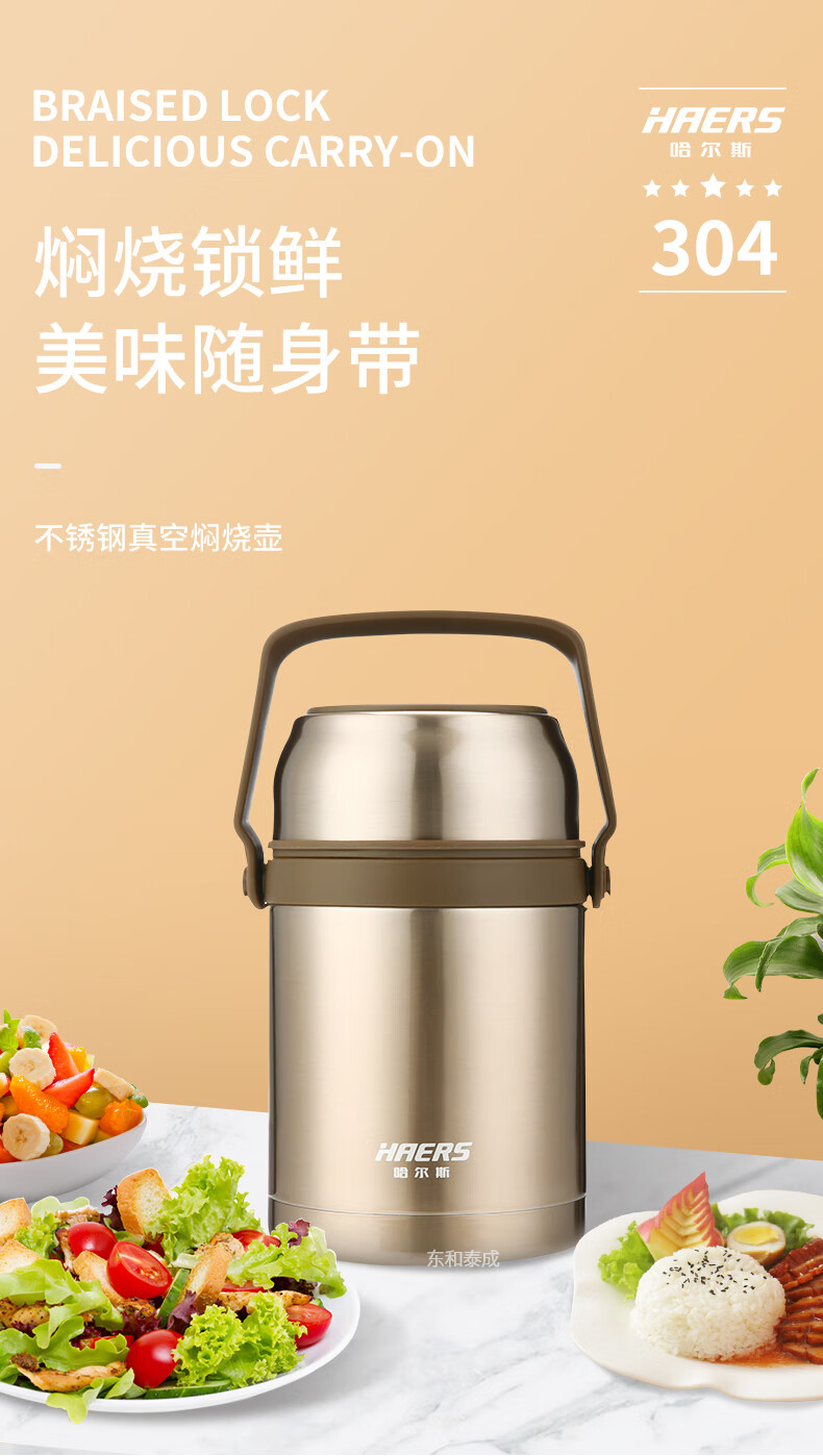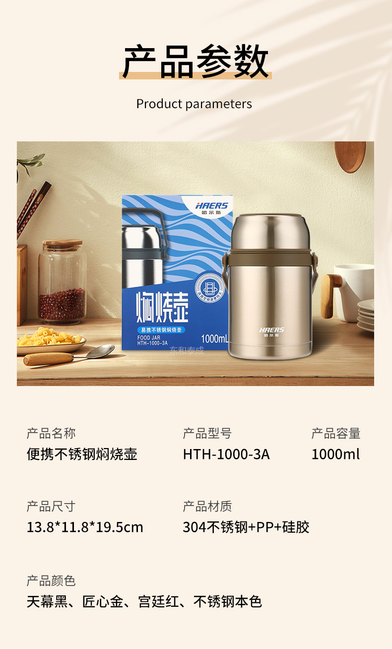 HAERS Insulated Stew Kettle Insulated Lunch Box HTH-1000-3A Craftsmanship Gold