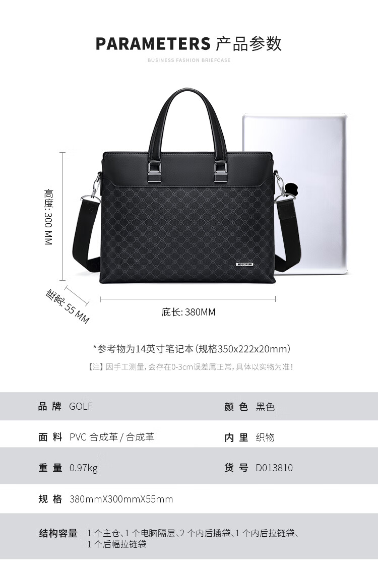Golf (GOLF) Briefcase Men's Handbag Men's 14-inch Laptop Bag Business Office Travel Shoulder Messenger Bag
