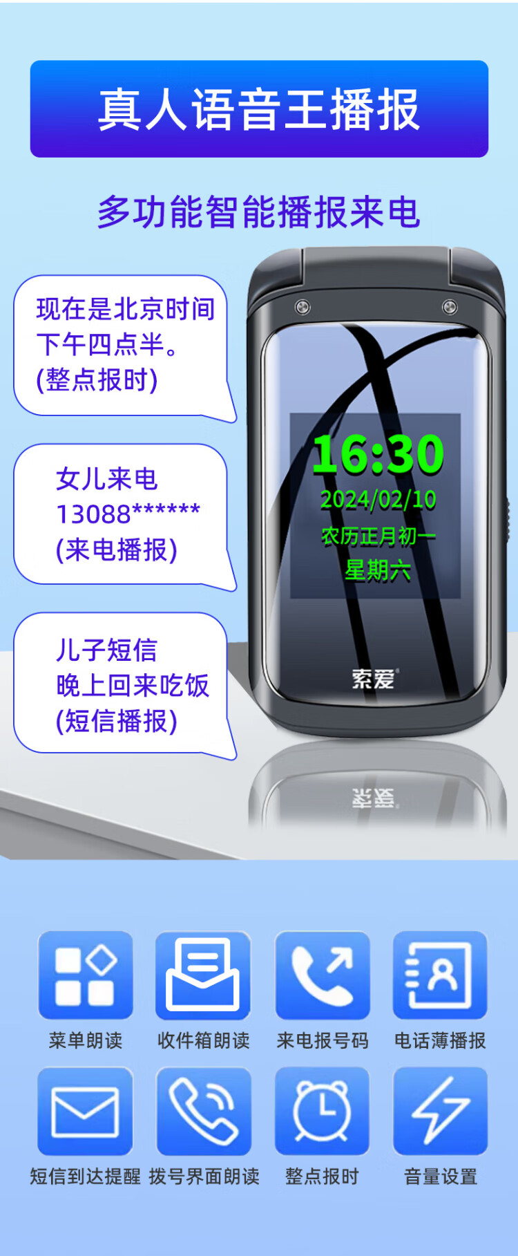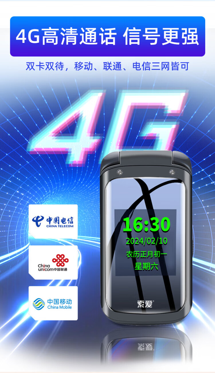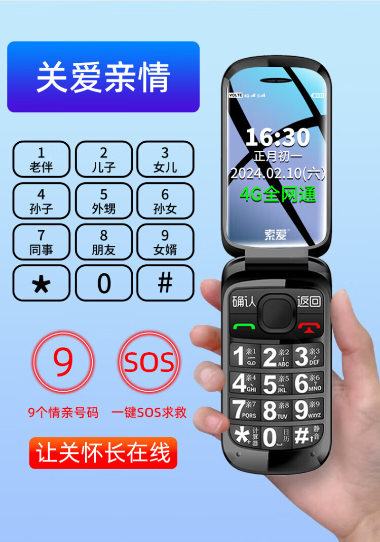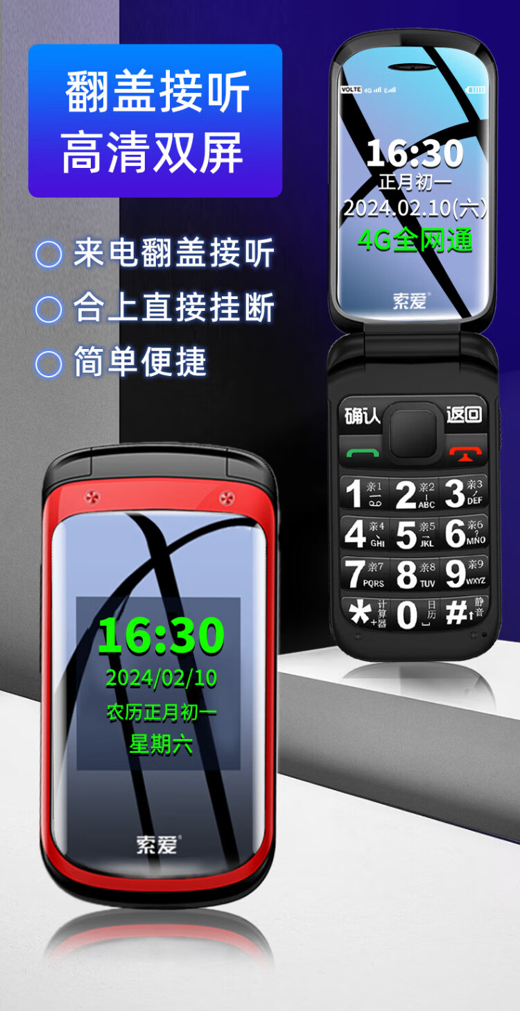 Sony Ericsson (soaiy) Z9C full network flip phone for the elderly 4G mobile China Unicom Telecom dual card dual standby large characters loud super long standby student and children spare iron gray