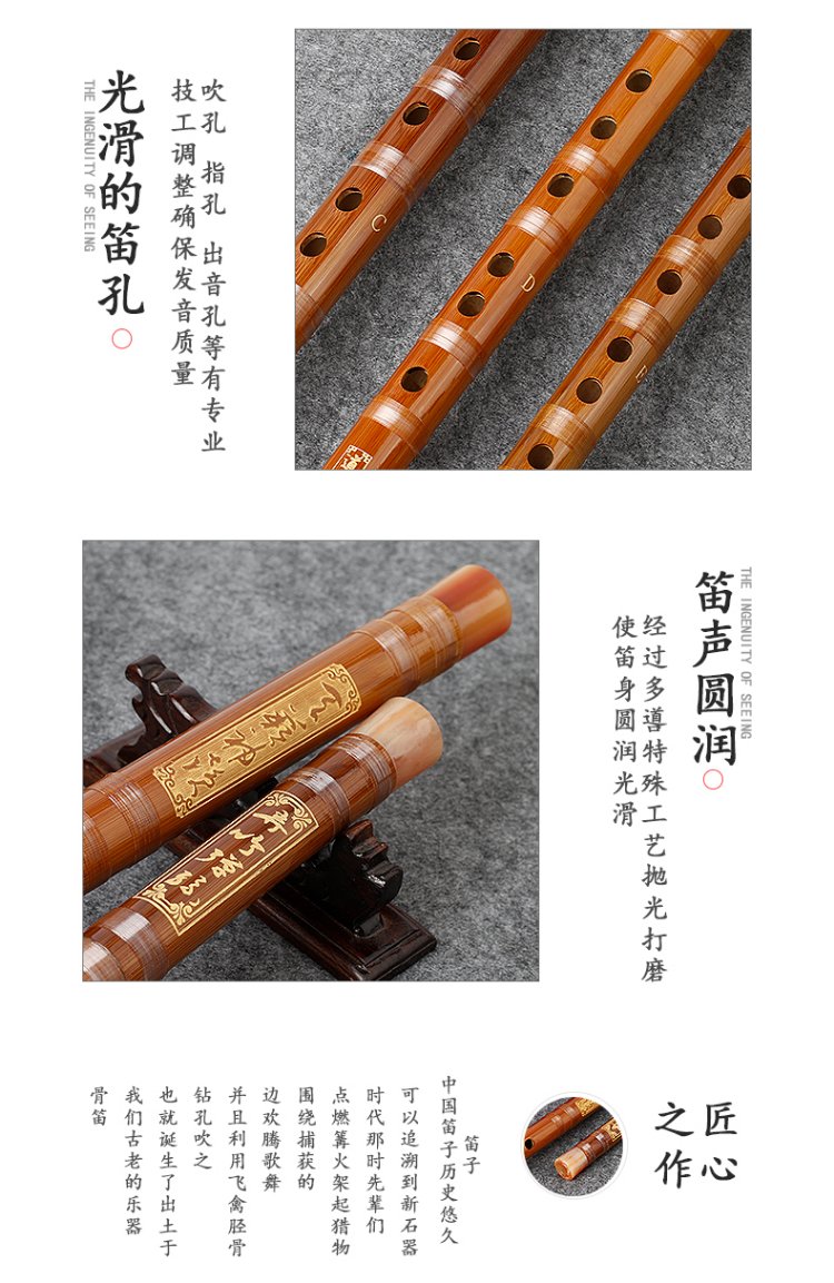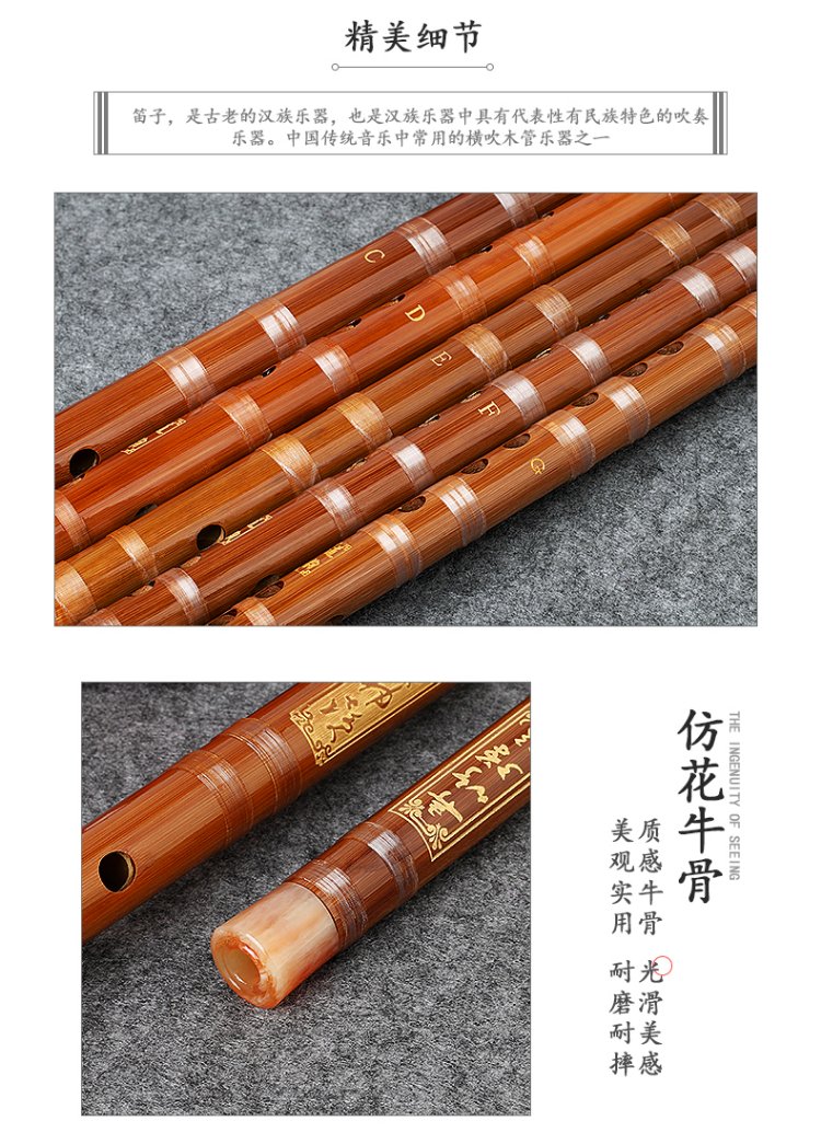 Minsine Bamboo Refined Flute Bamboo Flute E Key Single Insert White Copper Professional Flute National Wind Instrument D45