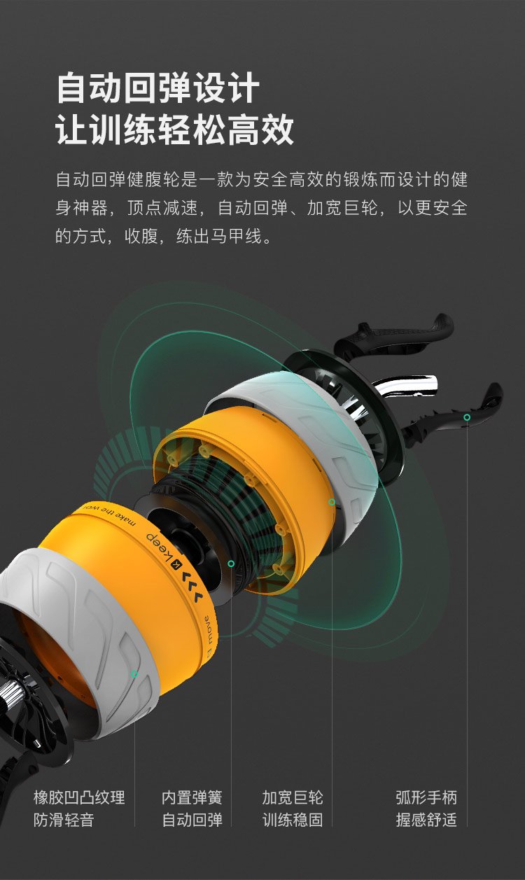 Keep Abdominal Wheel Automatic Rebound Home Abdominal Muscle Acceleration Men's and Women's Fitness Equipment Sports Abdominal Roller Black