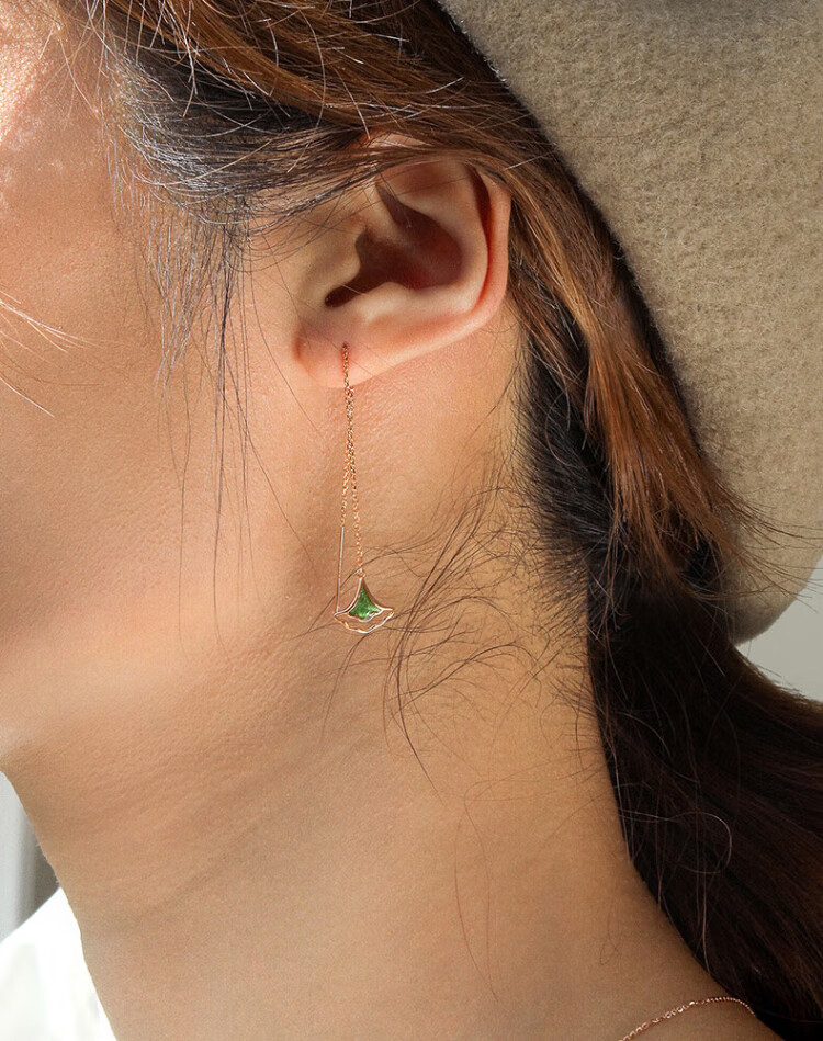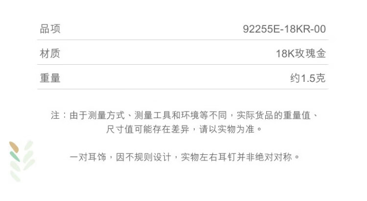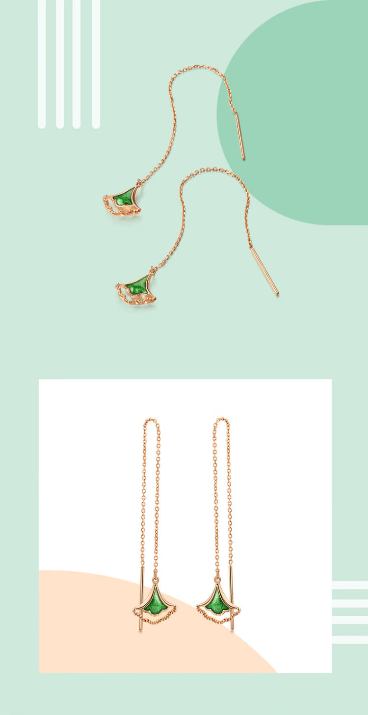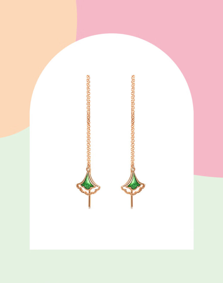 Chow Sang Sang 18K Rose Gold Stud Earrings Pair of Forever Series Ginkgo Leaf Color Gold Earrings 92255E Pricing