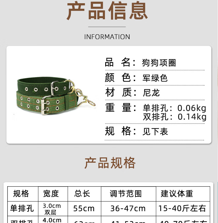 Gasgo dog collar, medium and large dog collar, pet collar, golden retriever Satsuma canvas dog collar, double row of holes
