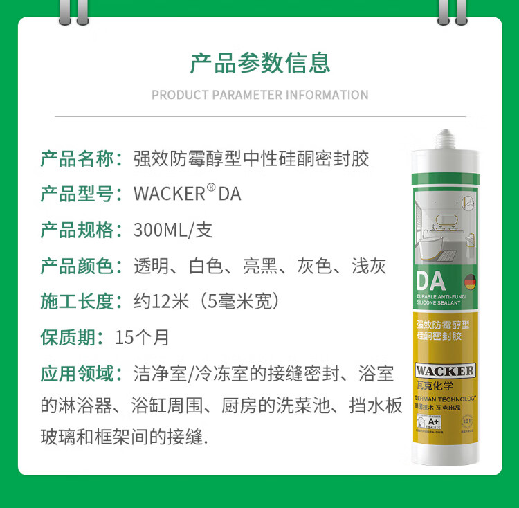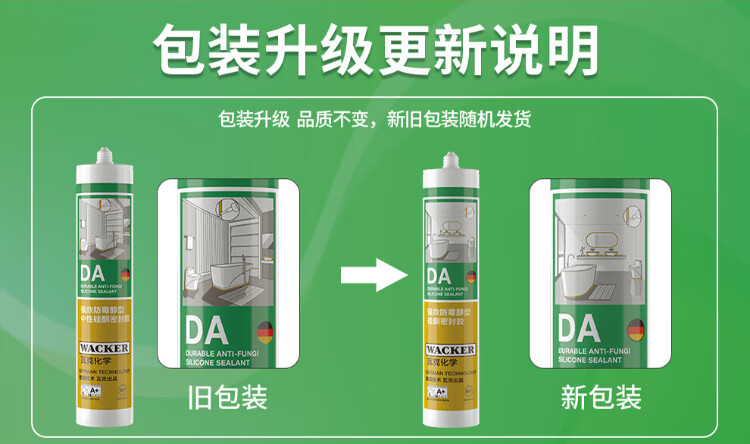 WACKER DA mildew-proof glass glue kitchen and bathroom special sealant waterproof beauty glue neutral toilet edge sealing silicone white 1 piece