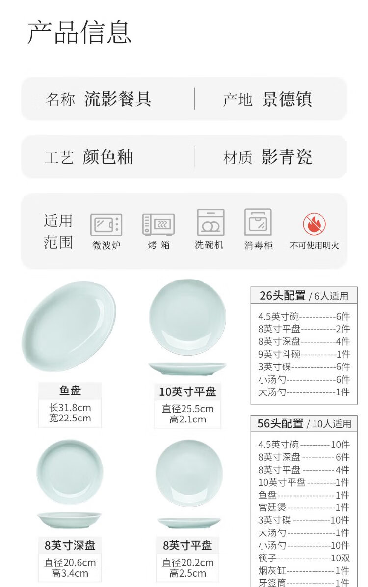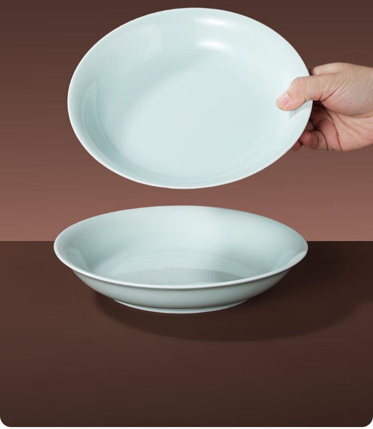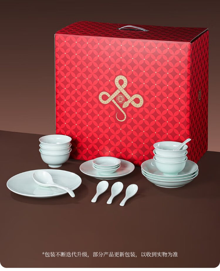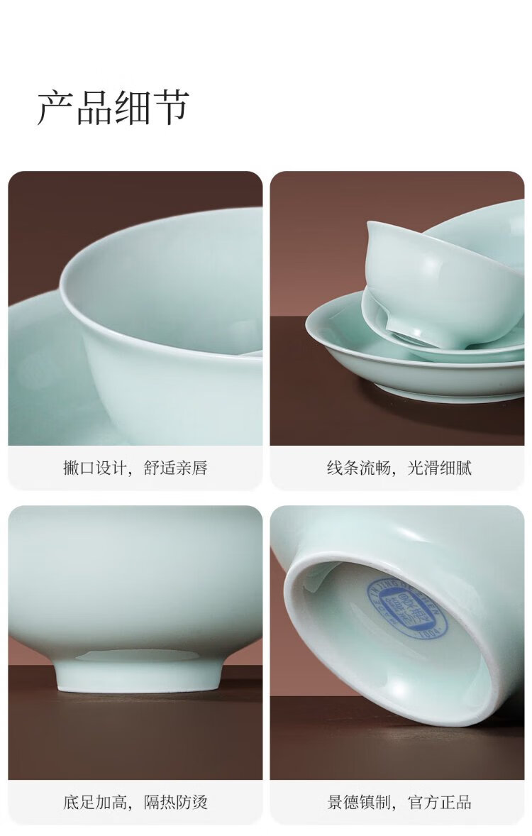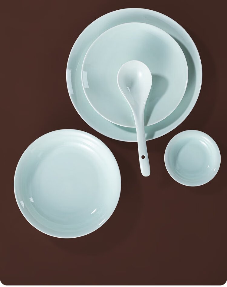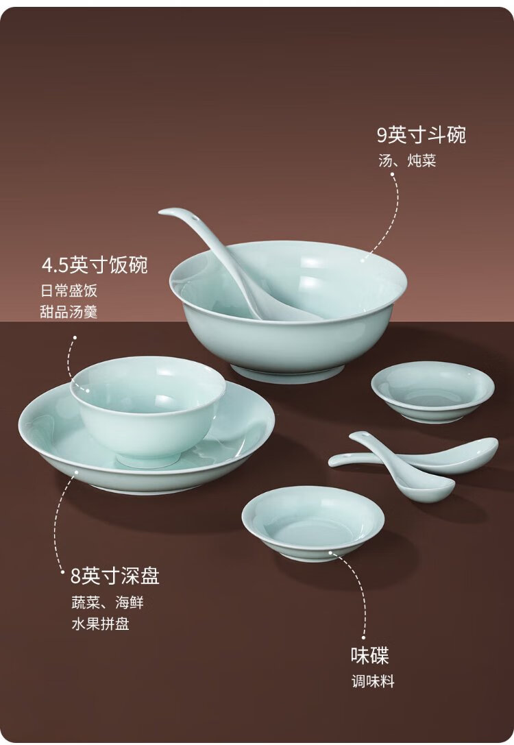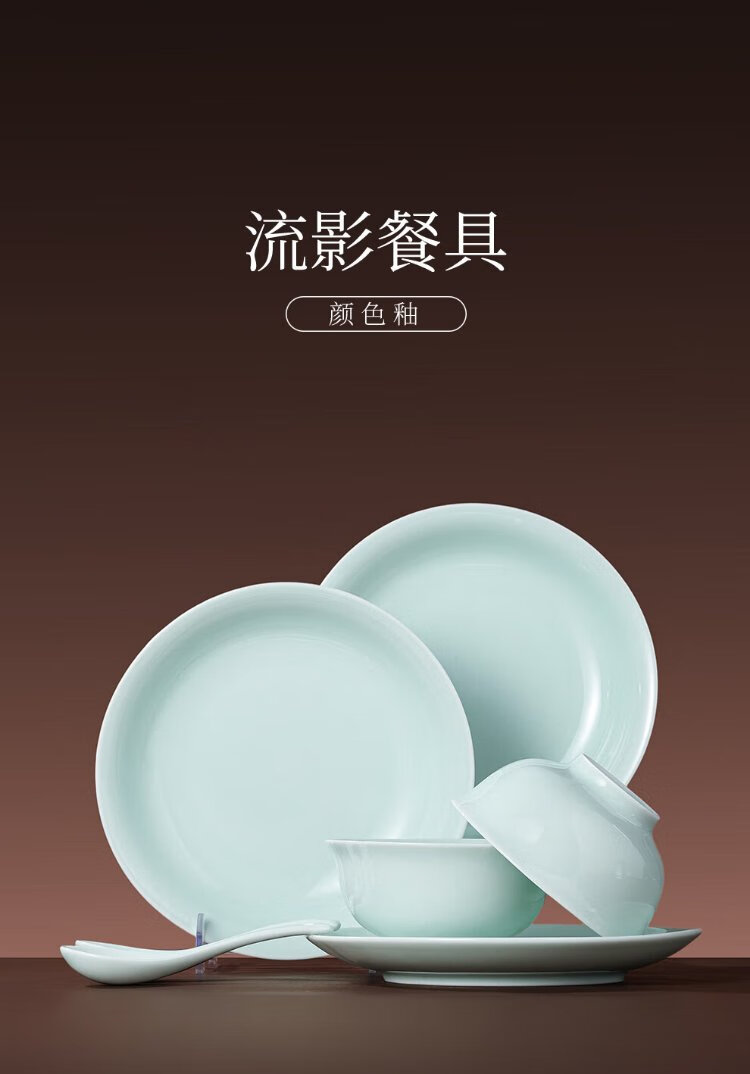 Jingdezhen (jdz) ceramic tableware complete set of Chinese style shadow green bowl and plate set household tableware housewarming high-end new wedding logistics shadow