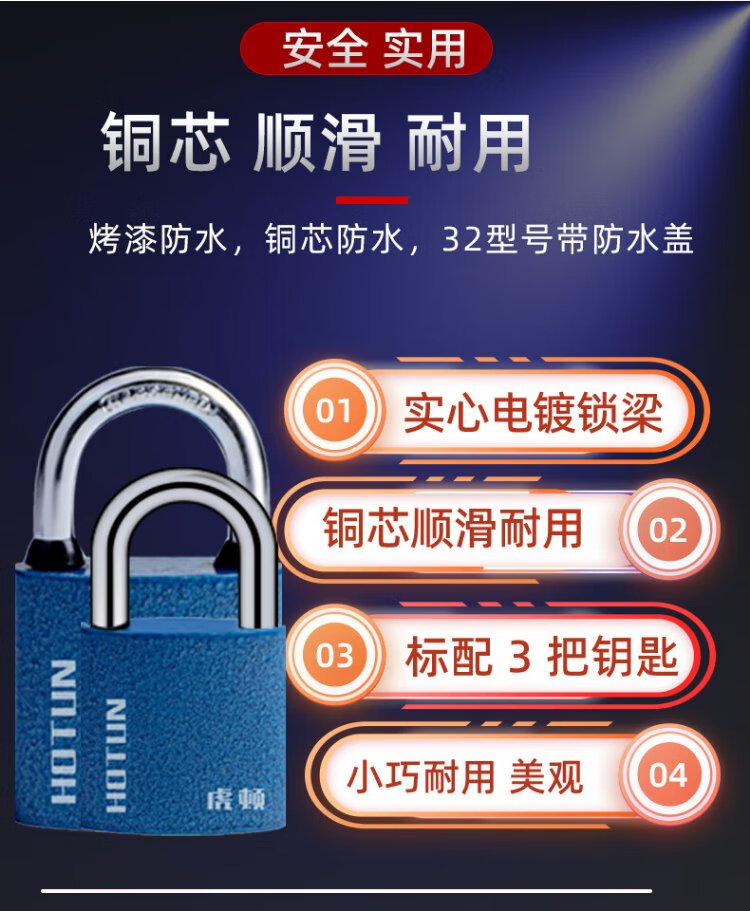 Hudun padlock anti-theft lock padlock waterproof anti-rust anti-pry lock door lock household small lock dormitory lock TG01-25