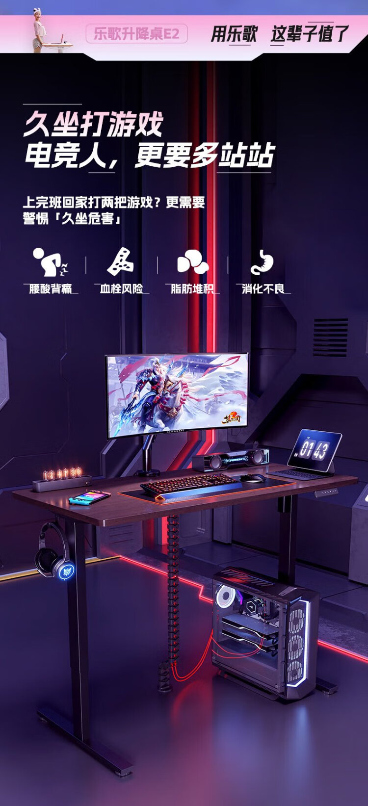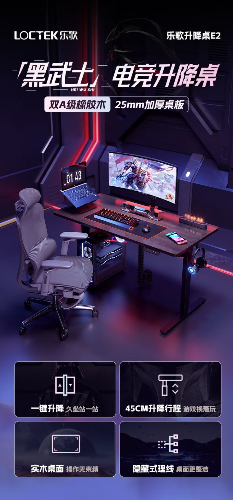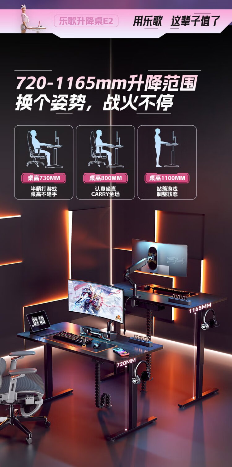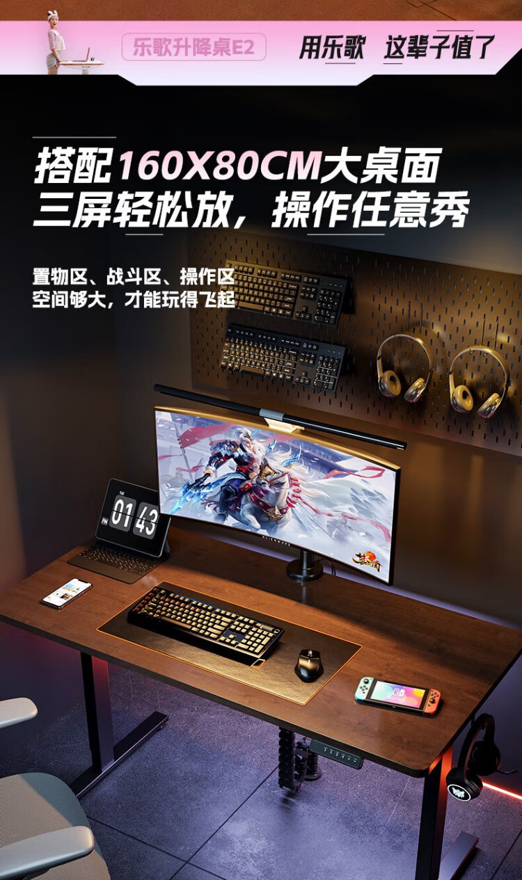Lege Government Subsidy Black Warrior E-Sports Desk Electric Lift Desk Computer Desktop Desk 1.4m E-Sports Board