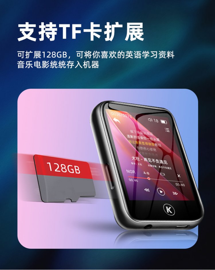 Fanmu BL13 32G mp3/mp4 player, lossless music player, student Bluetooth listening English listening repeater, vocal dictionary learning machine, full touch screen