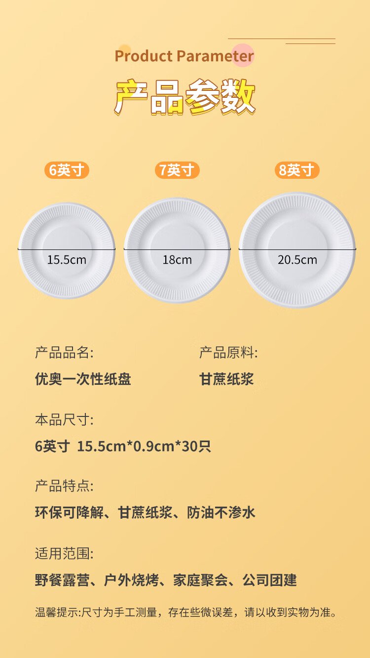Youao disposable plates 6 inches (30 pieces) biodegradable paper plate cake plate barbecue picnic plate tableware