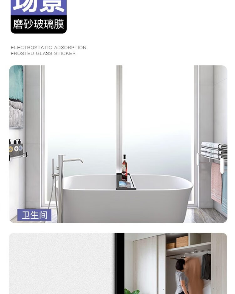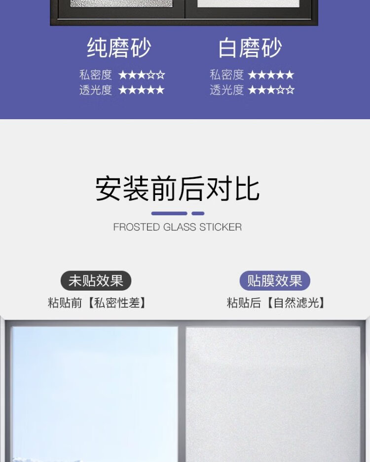Fuju frosted glass privacy film window film bathroom bathroom privacy sticker transparent and opaque 60*200cm