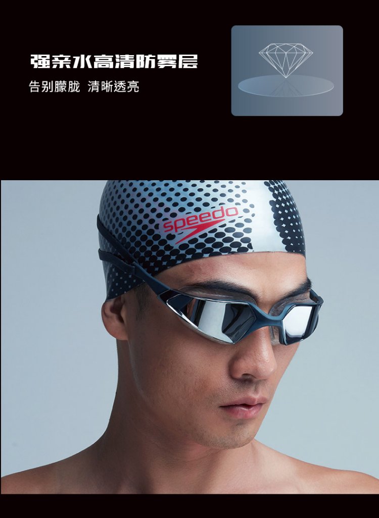 Speedo professional training large frame large field of view adult swimming goggles swimming training unisex gray/ash