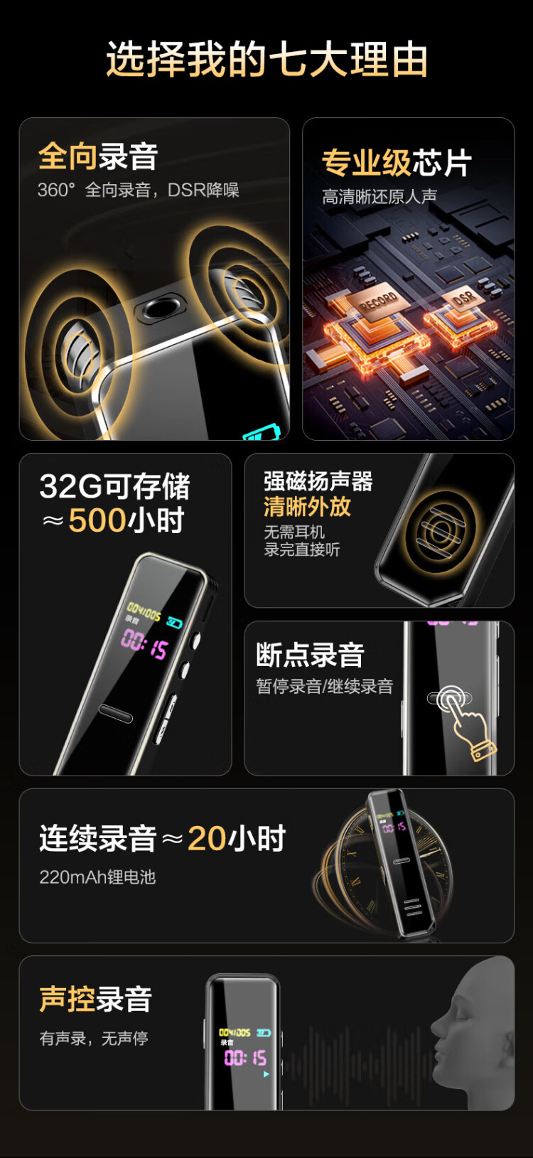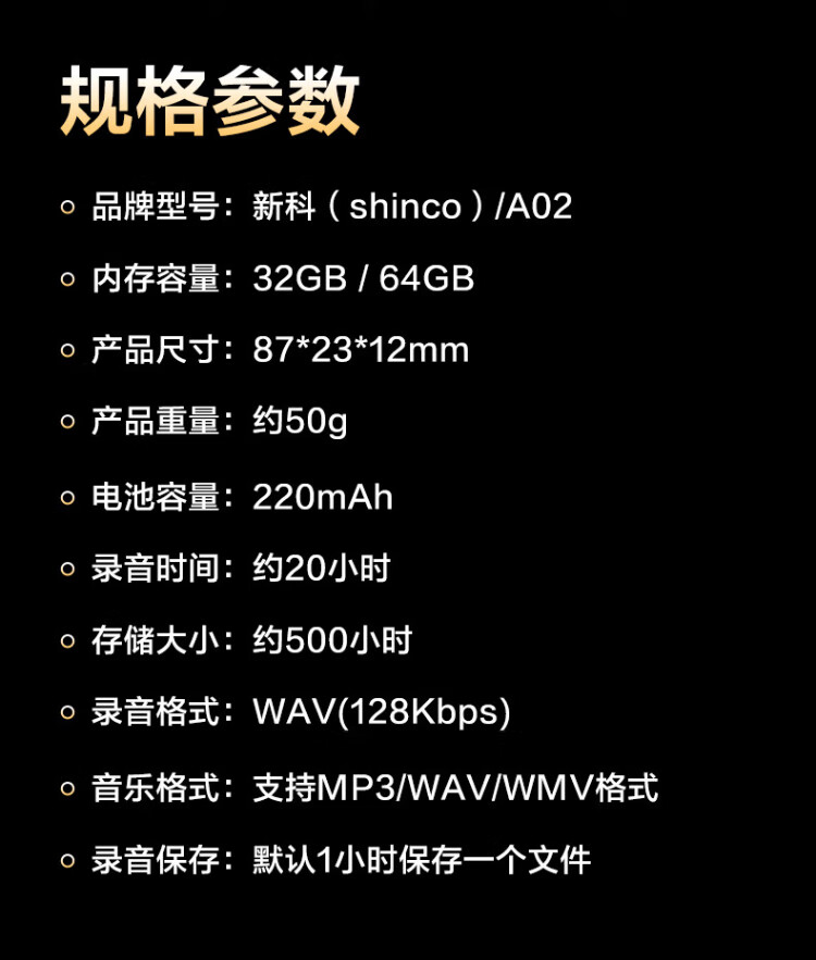 Shinco Recording Pen A02 Professional Portable 32G Large Capacity Professional Recorder High Definition Noise Reduction Super Long Recording Business Office Conference Training Learning Recording Equipment