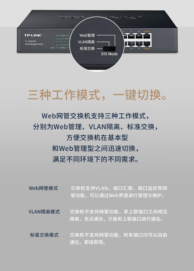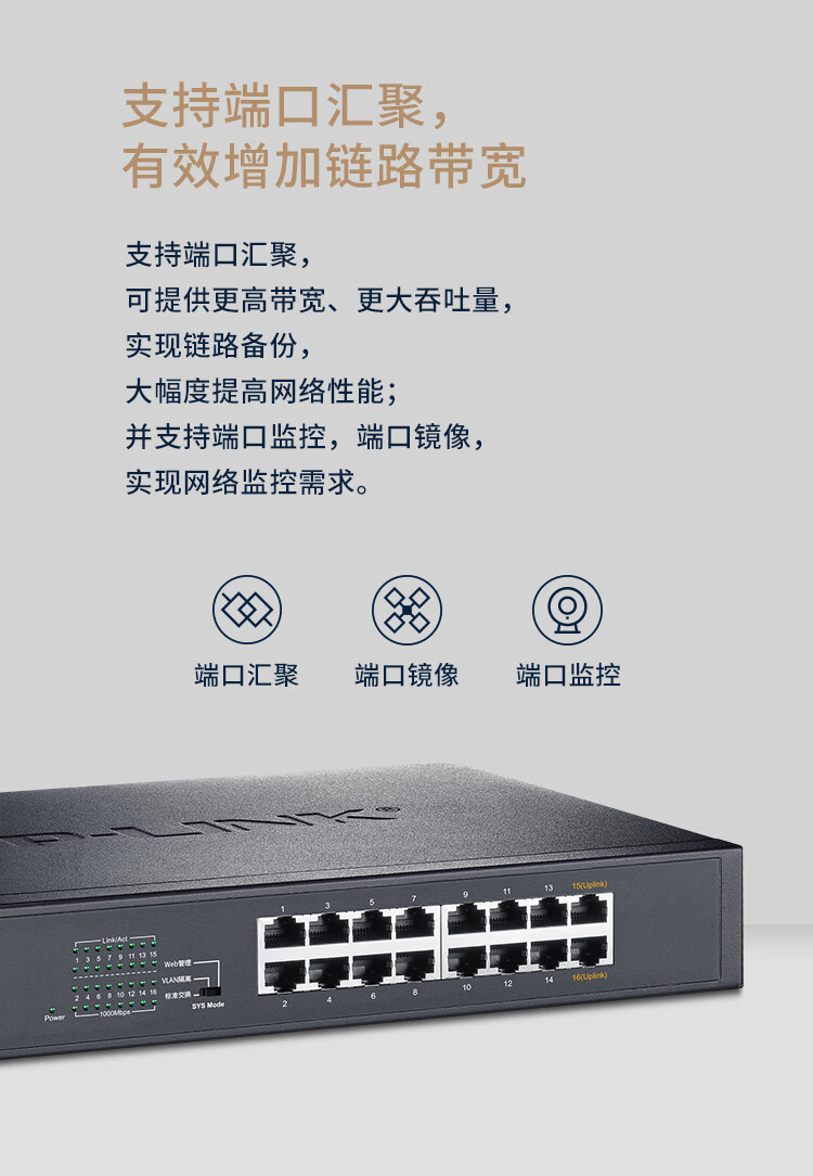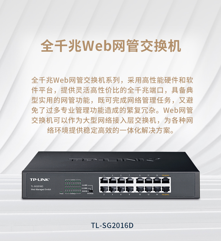 Pulian (TP-LINK) 16-port full Gigabit Web network managed switch enterprise-grade switch industrial-grade monitoring network cable splitter splitter TL-SG2016D