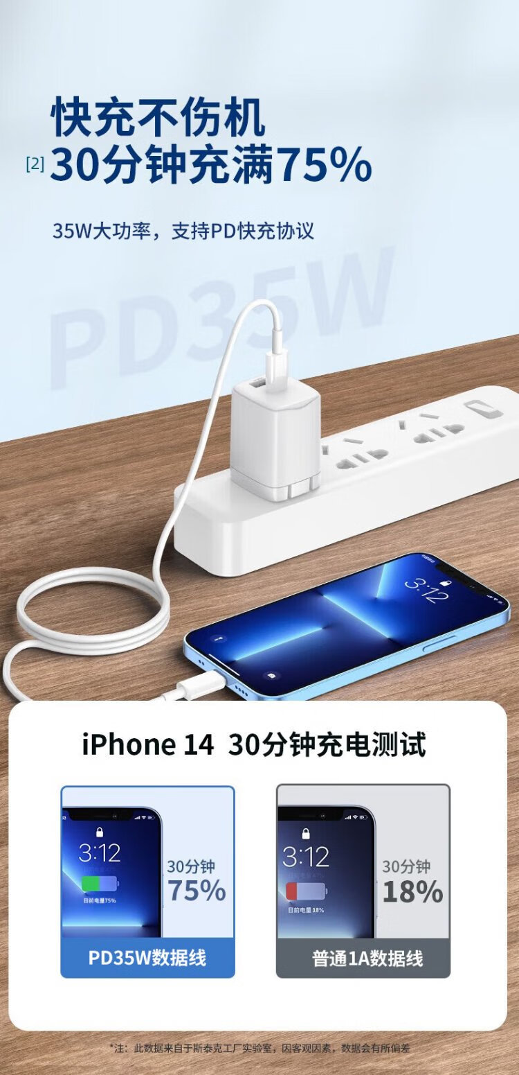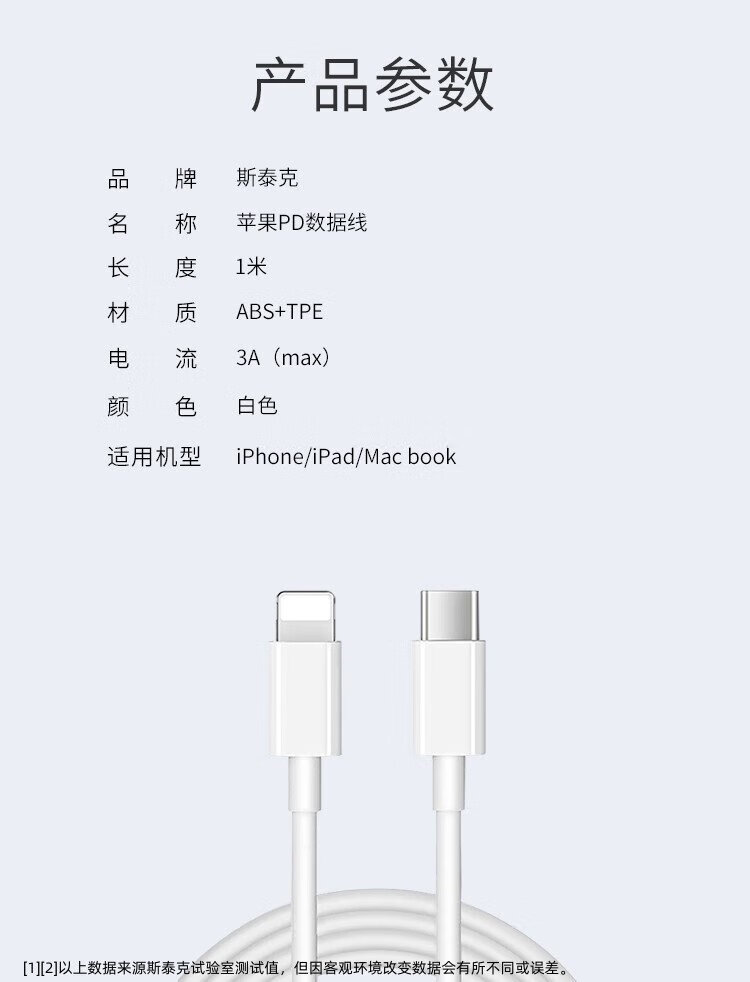 斯泰克适用于苹果充电线PD快充20/30W数据线Type-C to Lightning闪充iPhone14/13/12Pro/XsMax手机车载