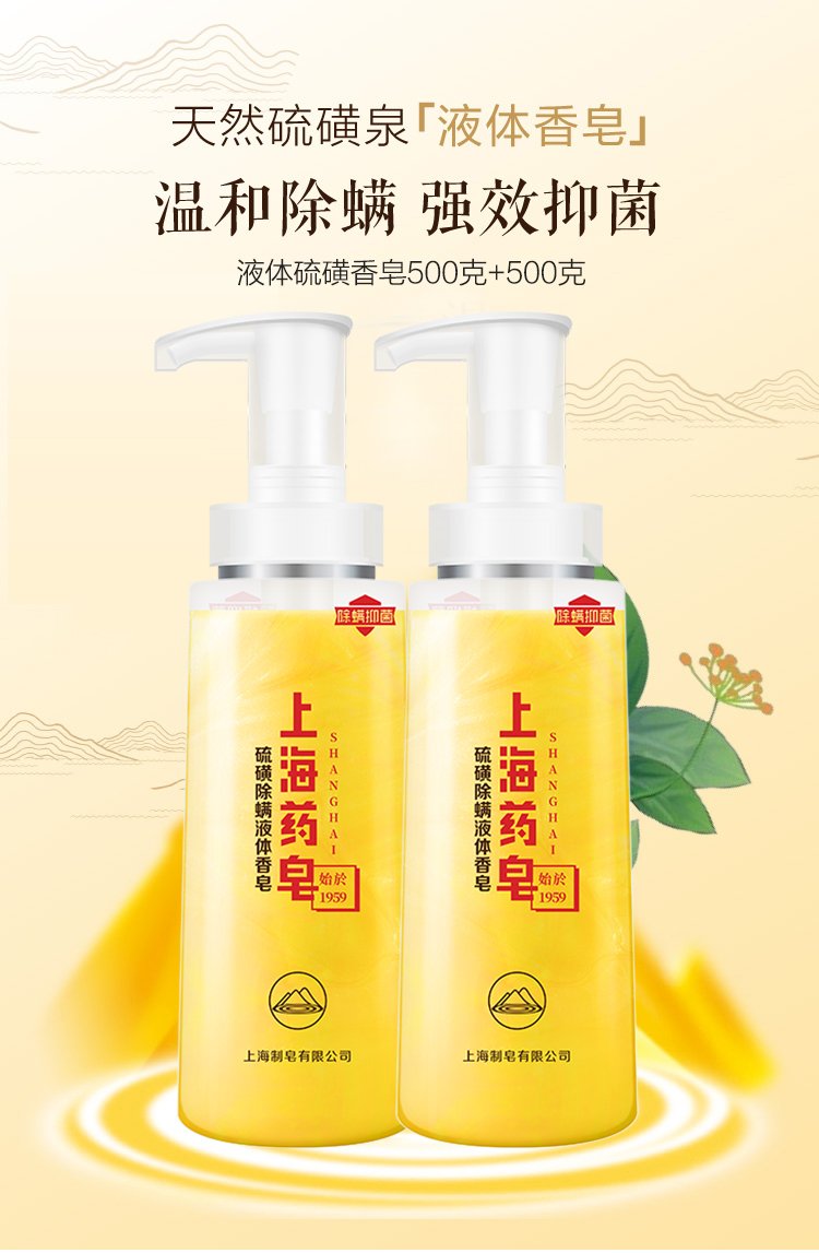 Shanghai Medicinal Soap Jingdong Gold List Soap Sulfur Soap Bath Men and Women Liquid Soap Lotion 500g*2 (Packaging Random)