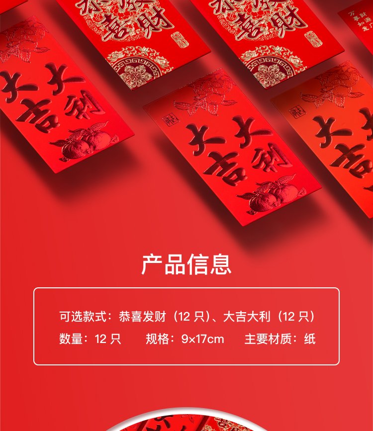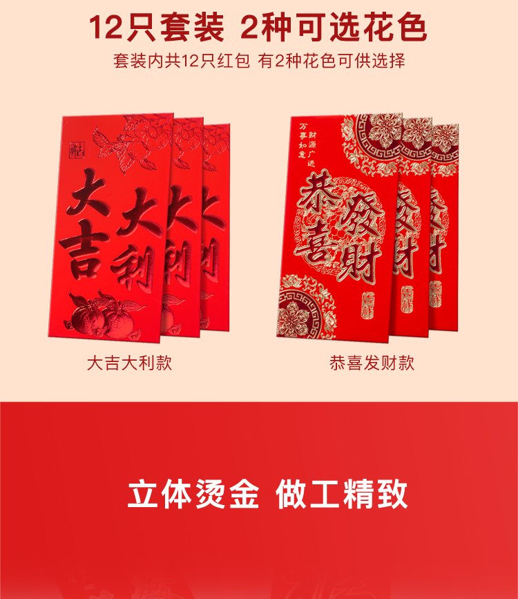 Foojo 3D Hard Card Red Packet Red Packet Yuan Edition 12 pieces