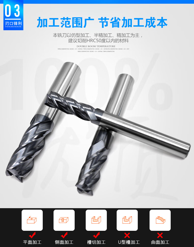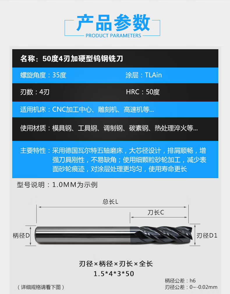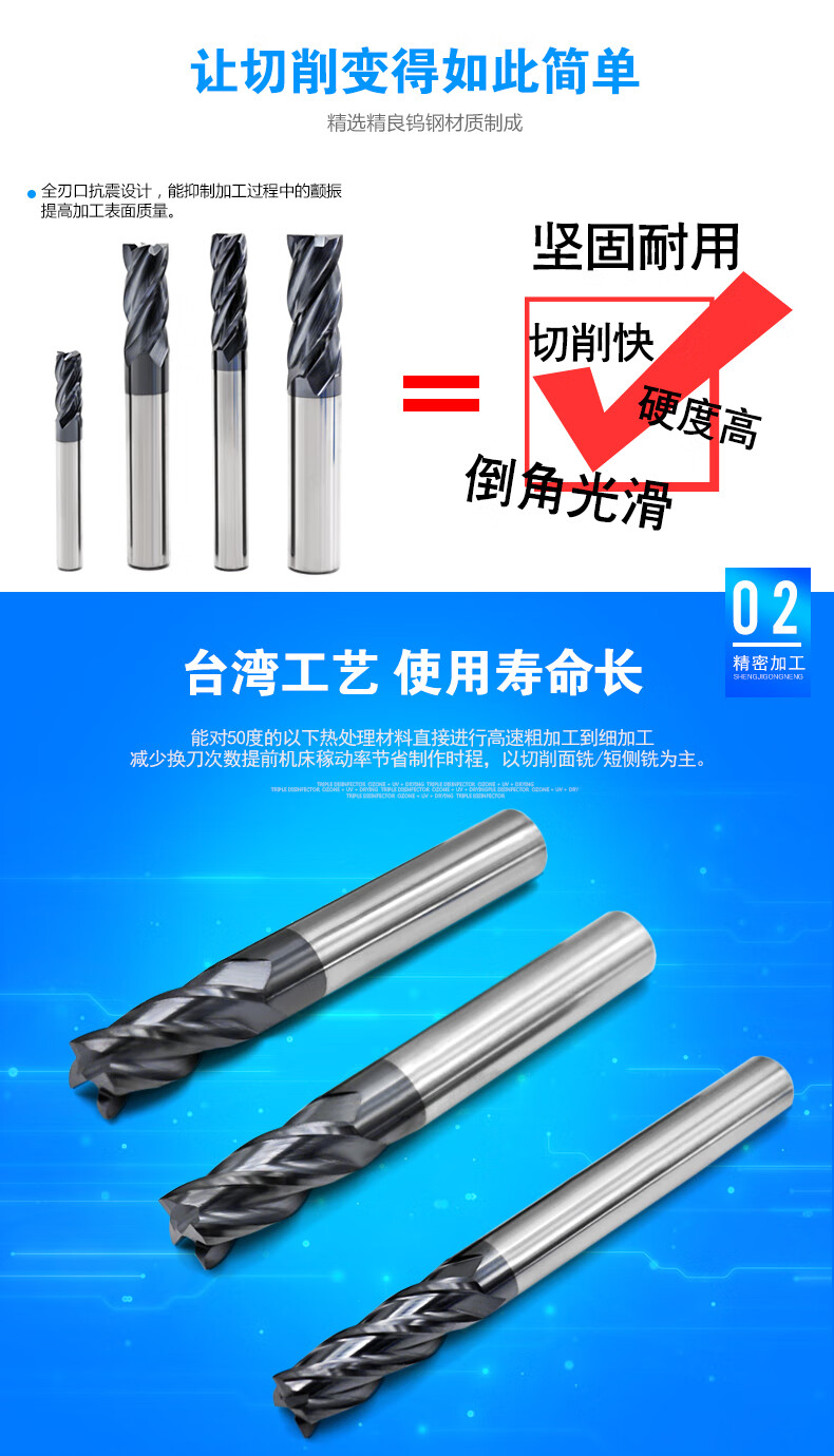 DAFEI50 degree 4-edge tungsten steel flat knife alloy knife CNC coated tungsten steel milling cutter gong cutter end mill 4.0*4*10*50