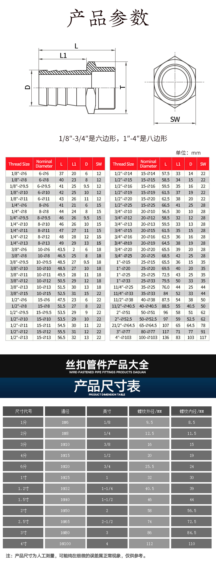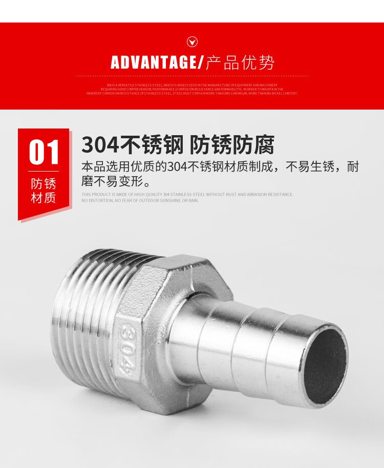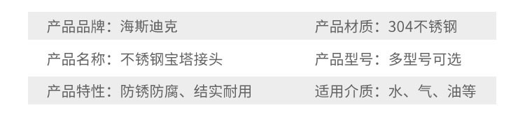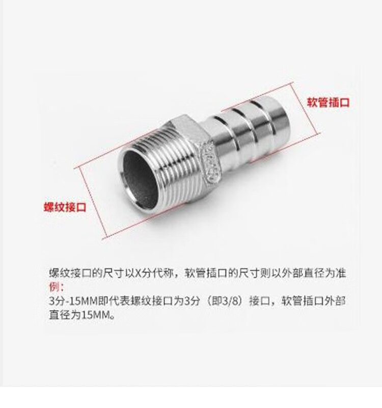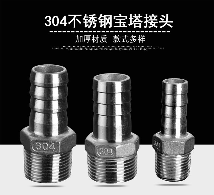 Hasdick 304 stainless steel pagoda connector hexagonal leather pipe connector hose connector 1*25mm