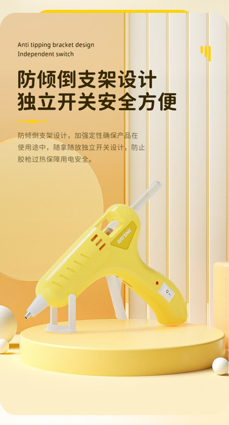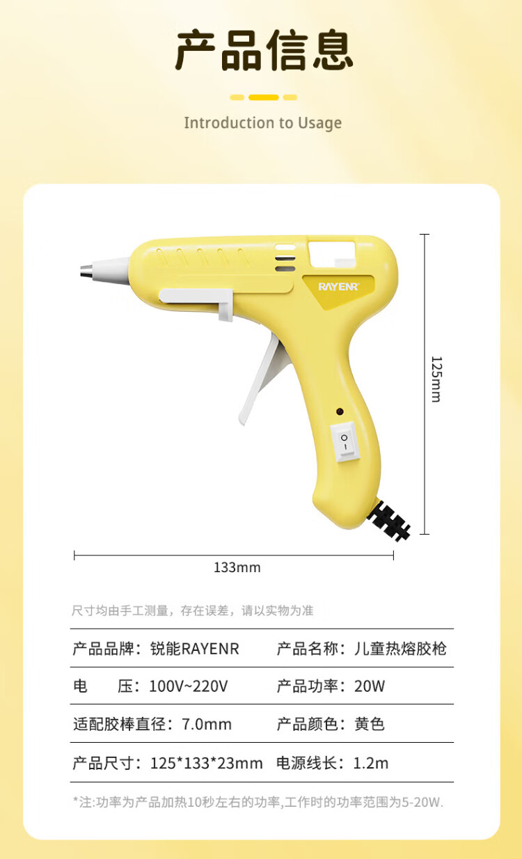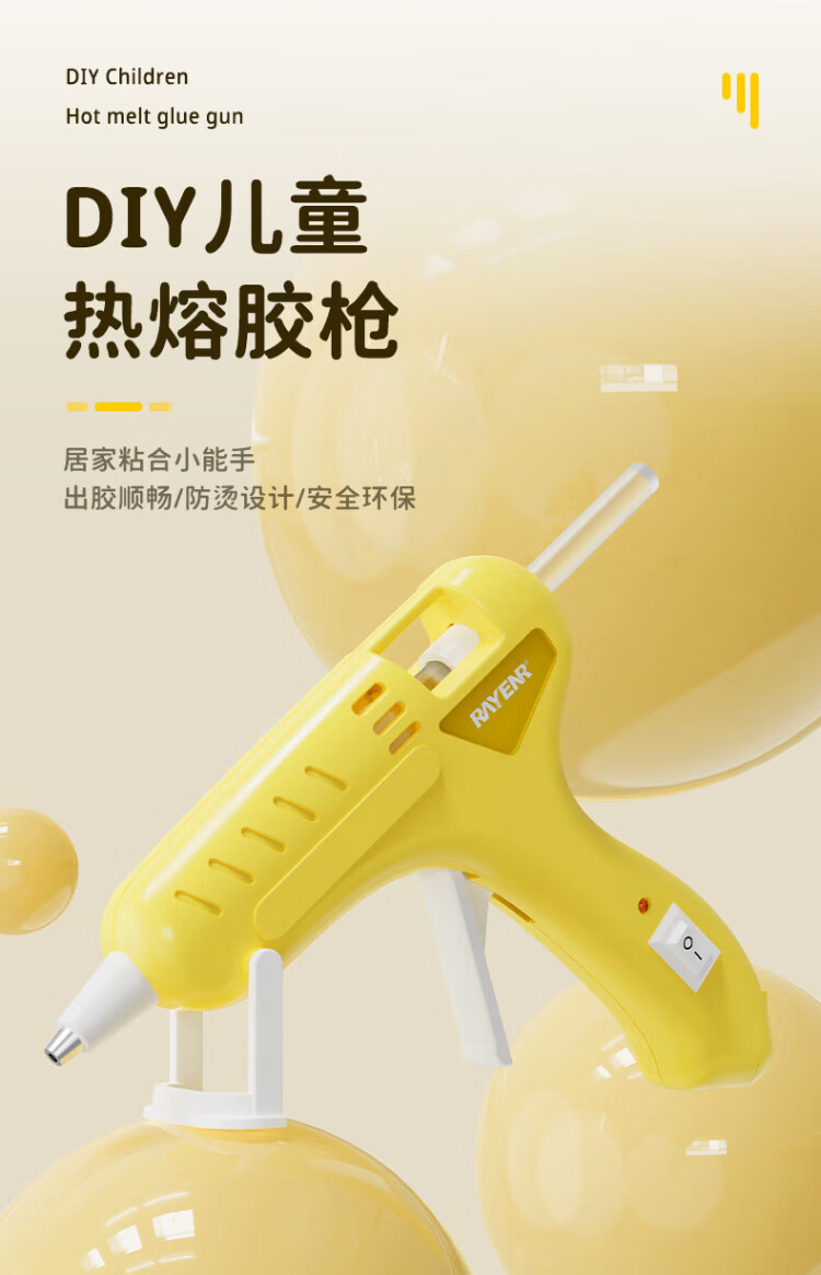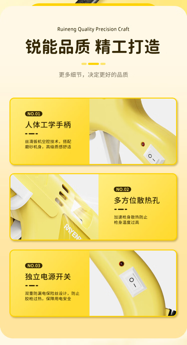 Ruineng hot melt glue gun household child safety handmade DIY high viscosity hot melt glue 10 glue sticks yellow 20W glue gun