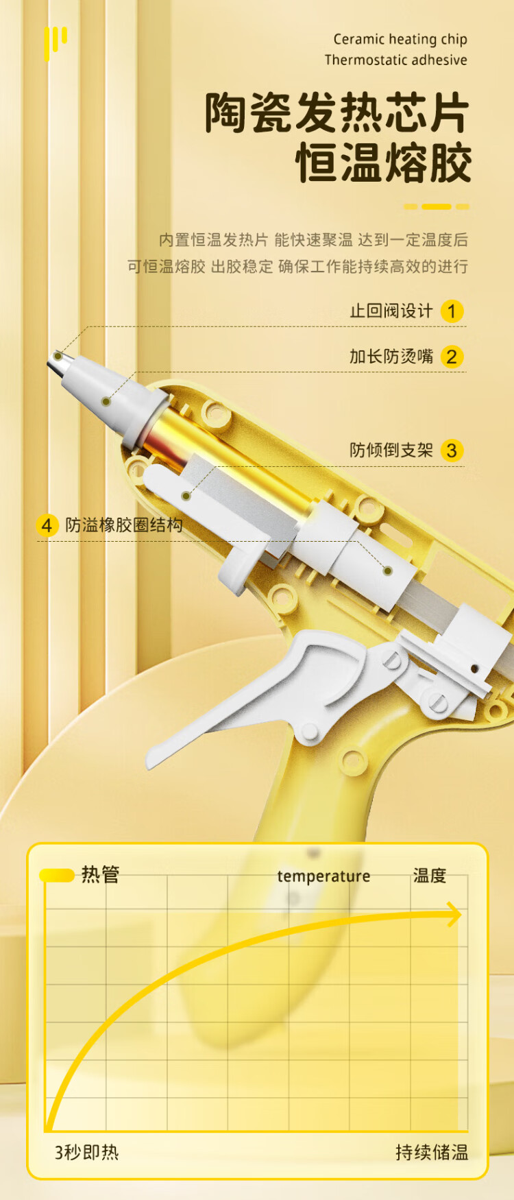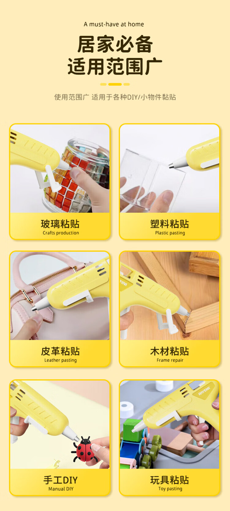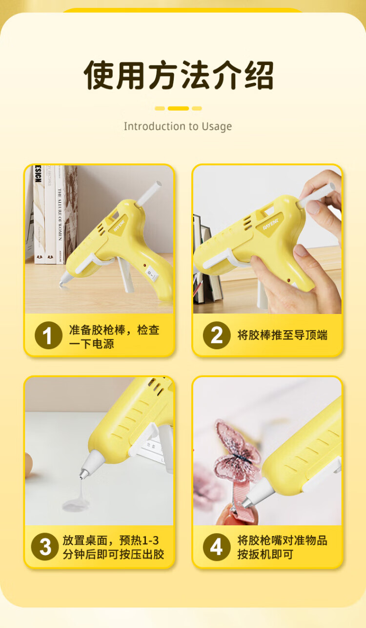 Ruineng hot melt glue gun household child safety handmade DIY high viscosity hot melt glue 10 glue sticks yellow 20W glue gun