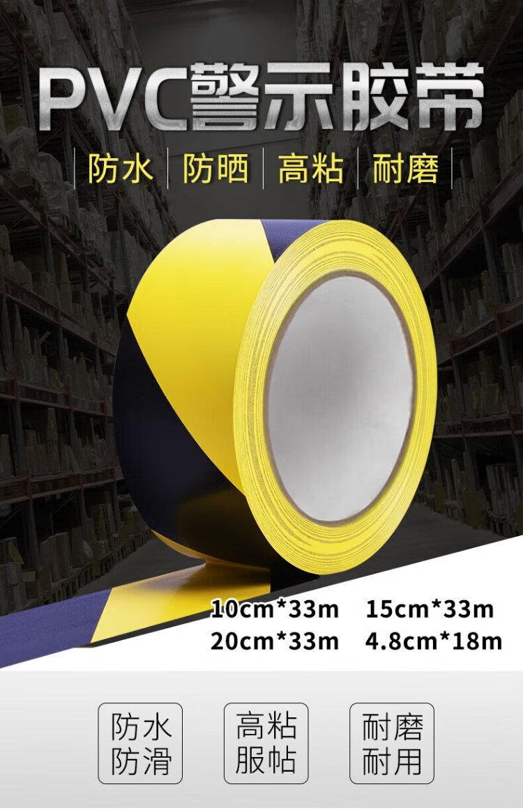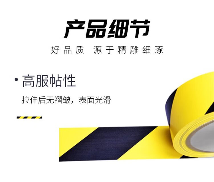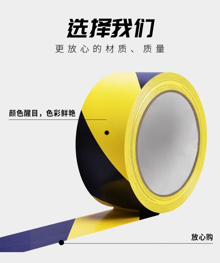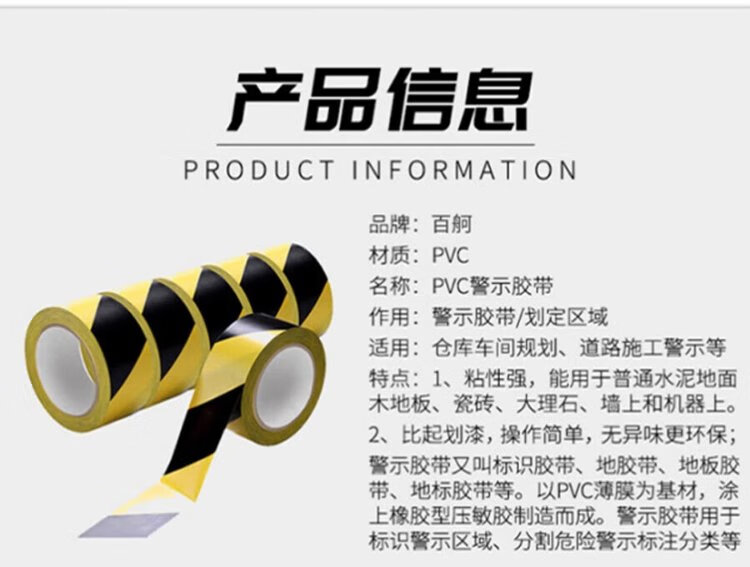 Baige yellow and black safety warning tape PVC positioning line zebra mulch warning line isolation tape two-color 48mm*33m 1 roll CW217213