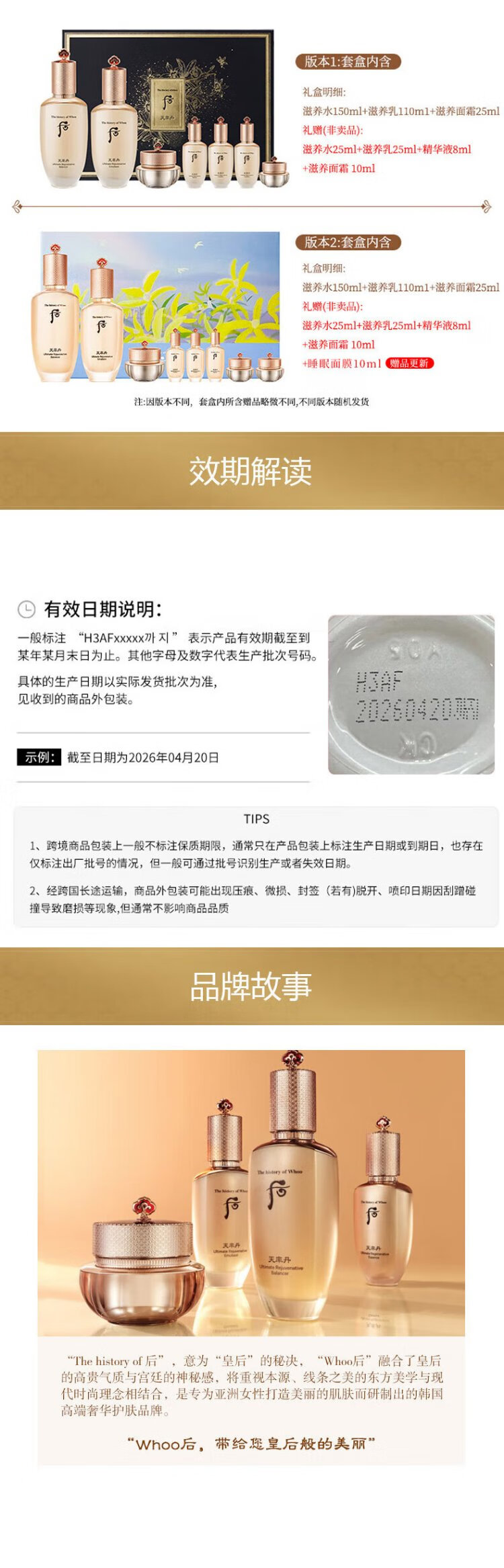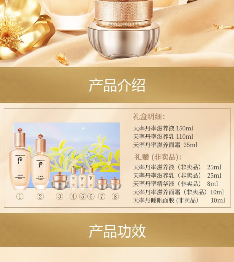 Hou Whoo Tianshu Dan Moisturizing Cream Skin Care Products 7-piece Set Gift Box 353ml Anti-Aging Repair Girl Birthday Gift