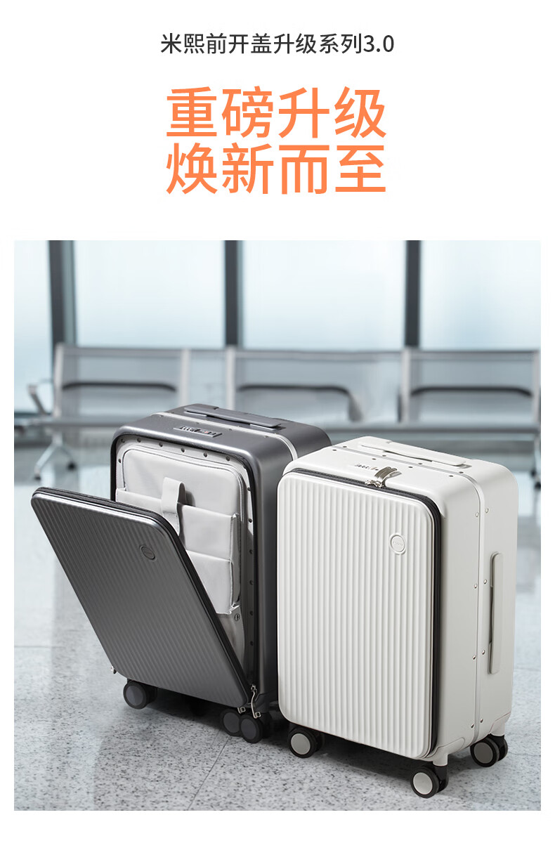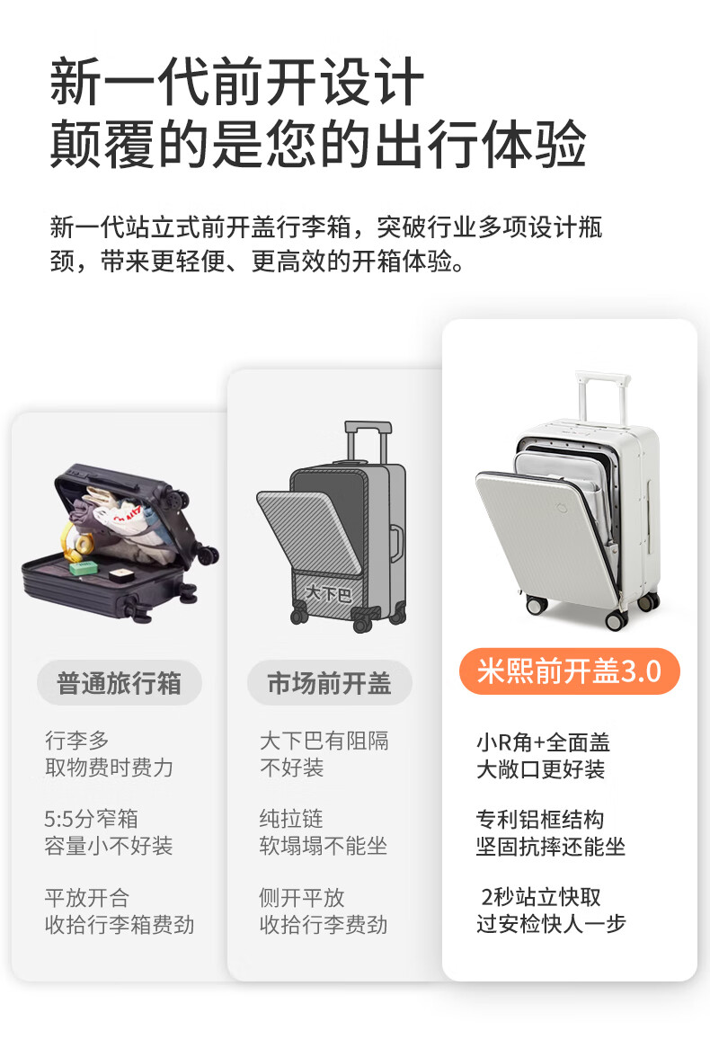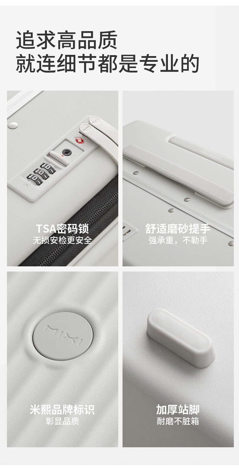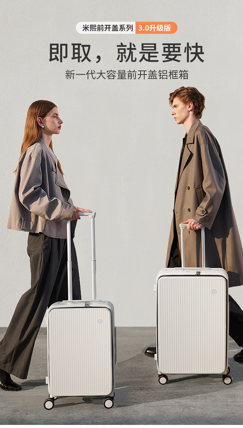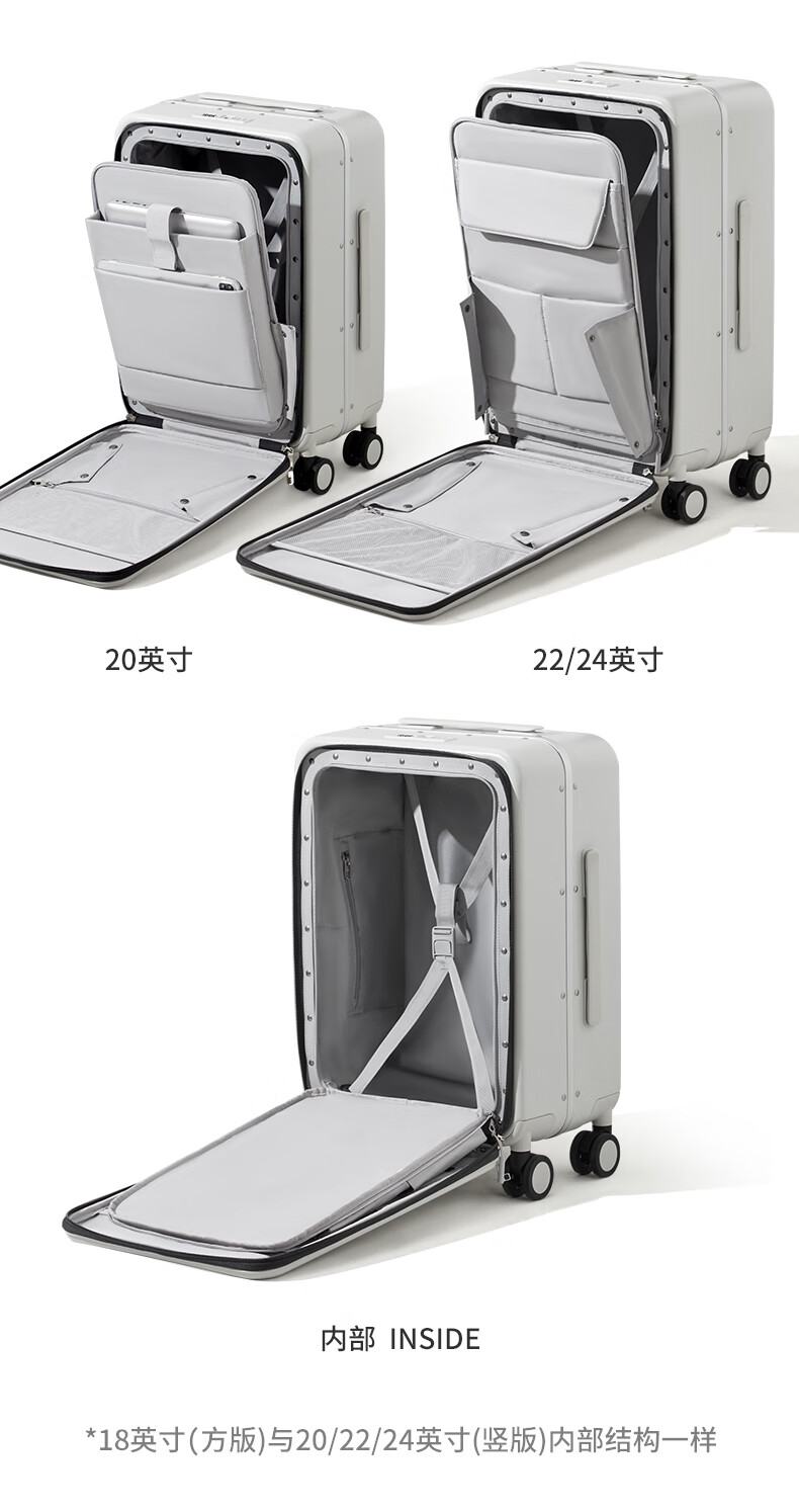 Mixi front opening aluminum frame luggage trolley box password box suitcase large capacity suitcase men's 20 inches smoke white 70