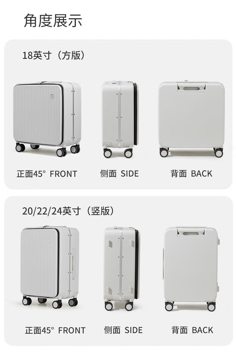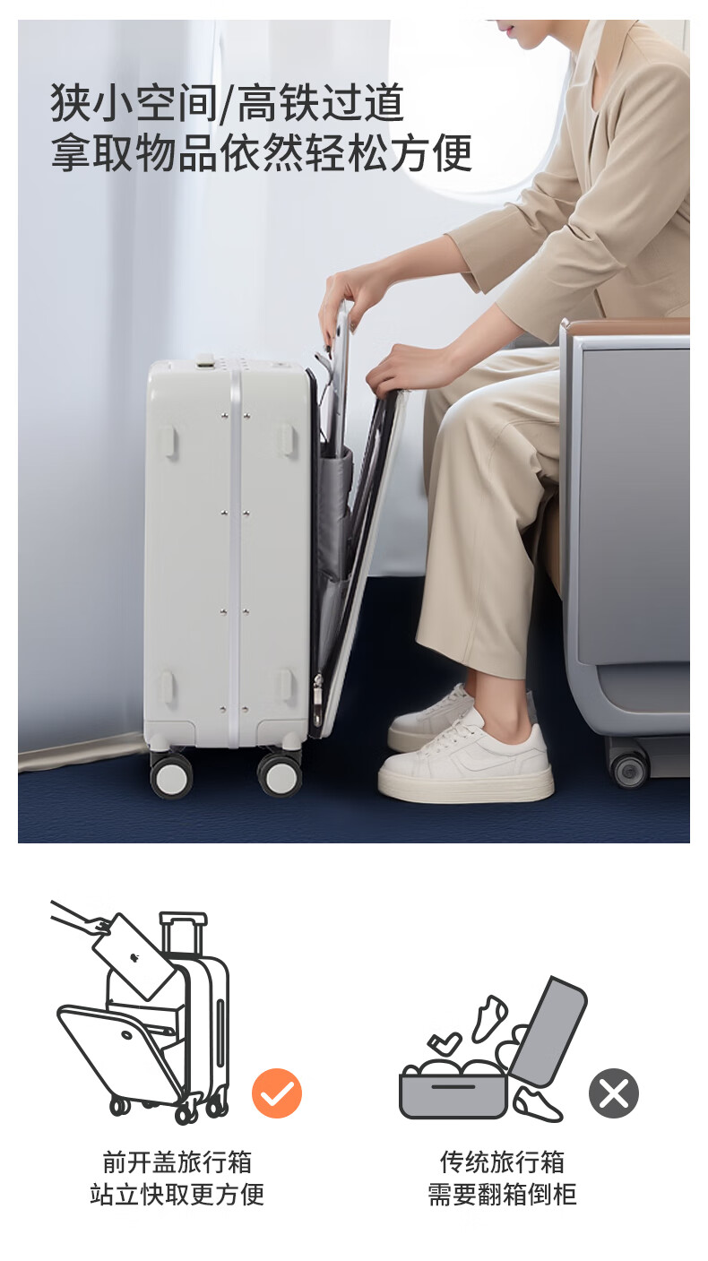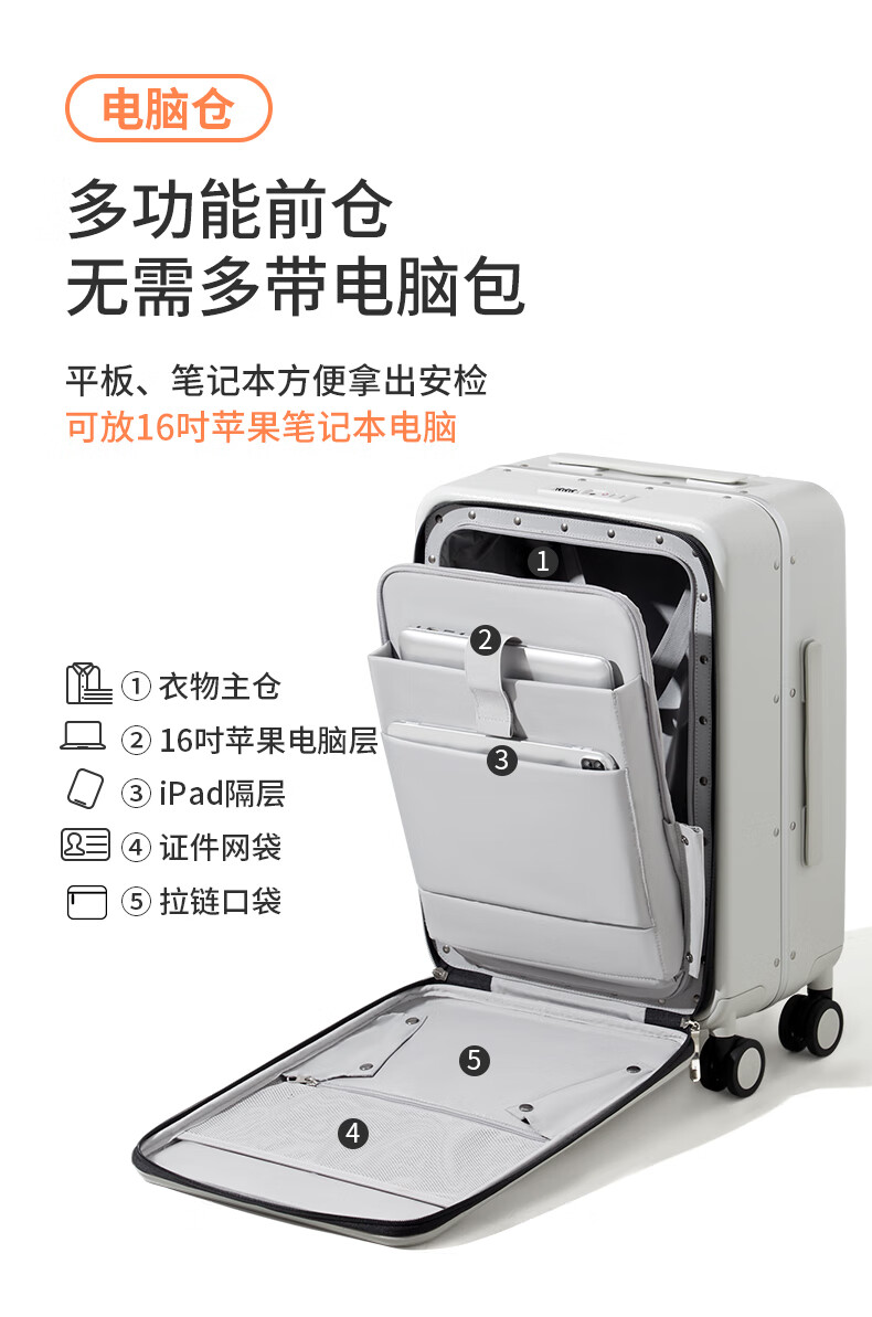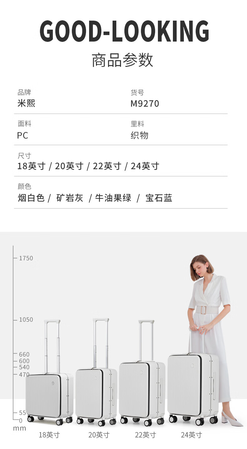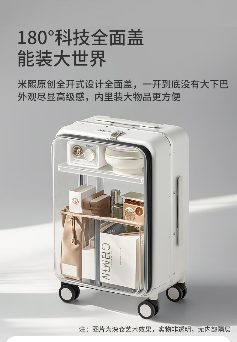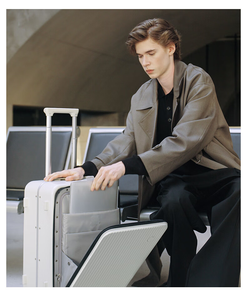 Mixi front opening aluminum frame luggage trolley box password box suitcase large capacity suitcase men's 20 inches smoke white 70