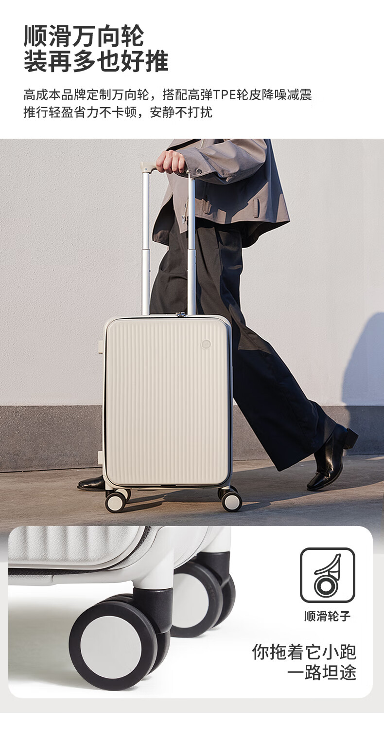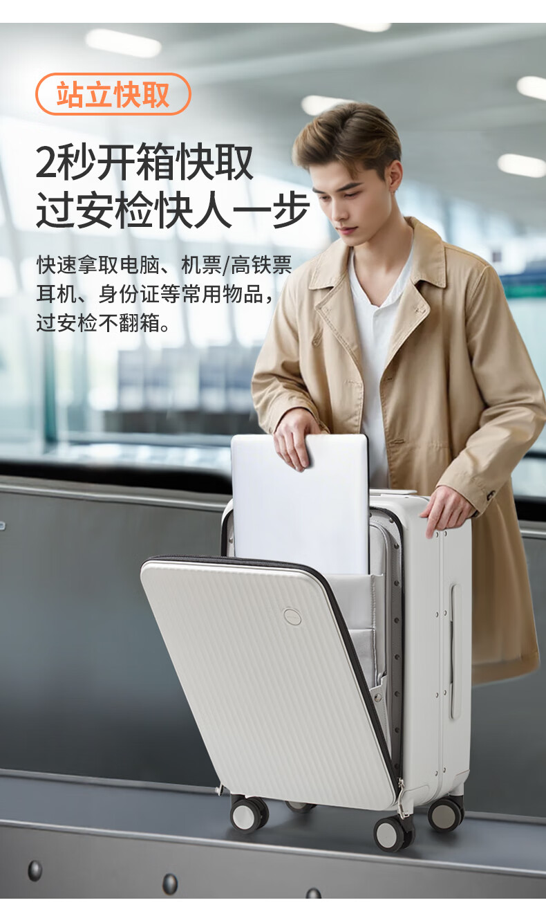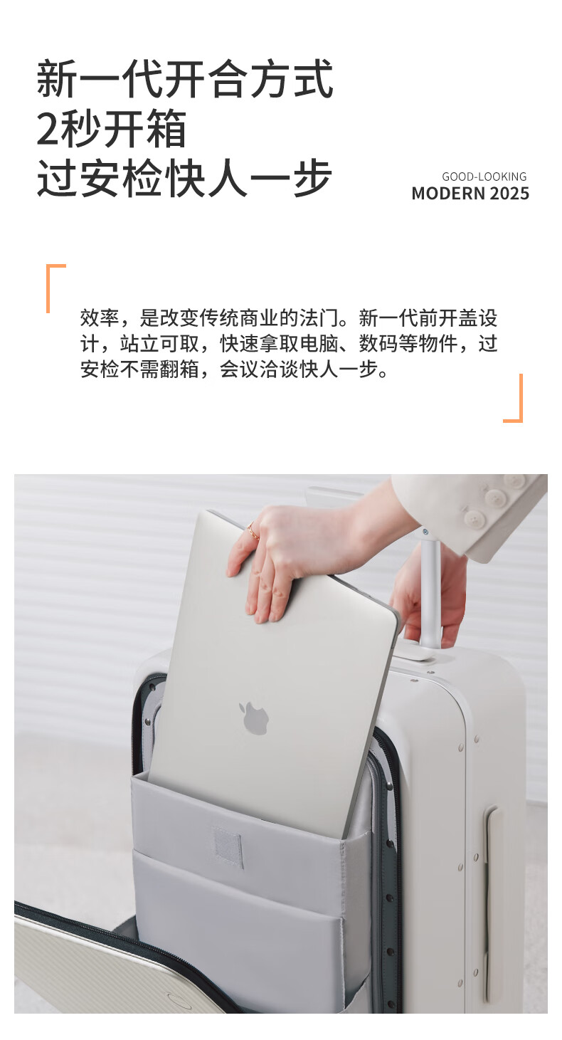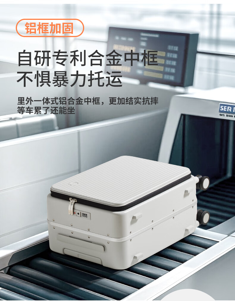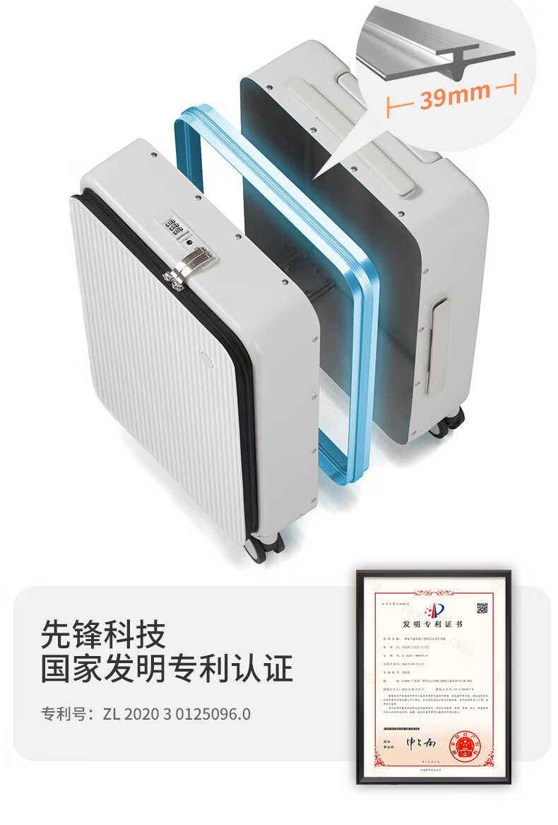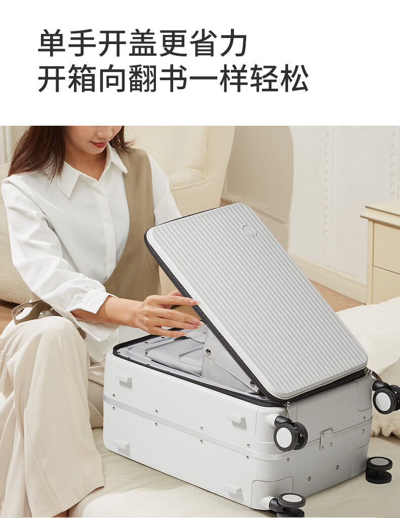 Mixi front opening aluminum frame luggage trolley box password box suitcase large capacity suitcase men's 20 inches smoke white 70