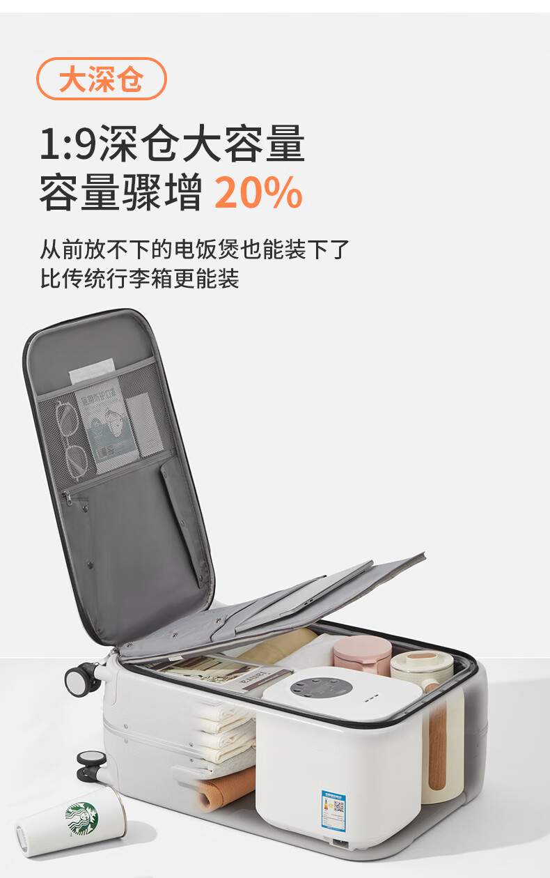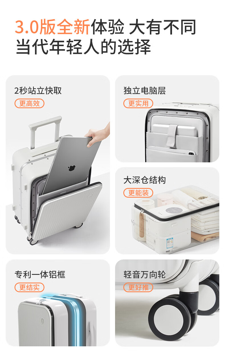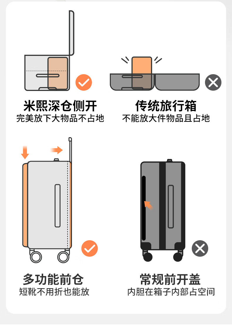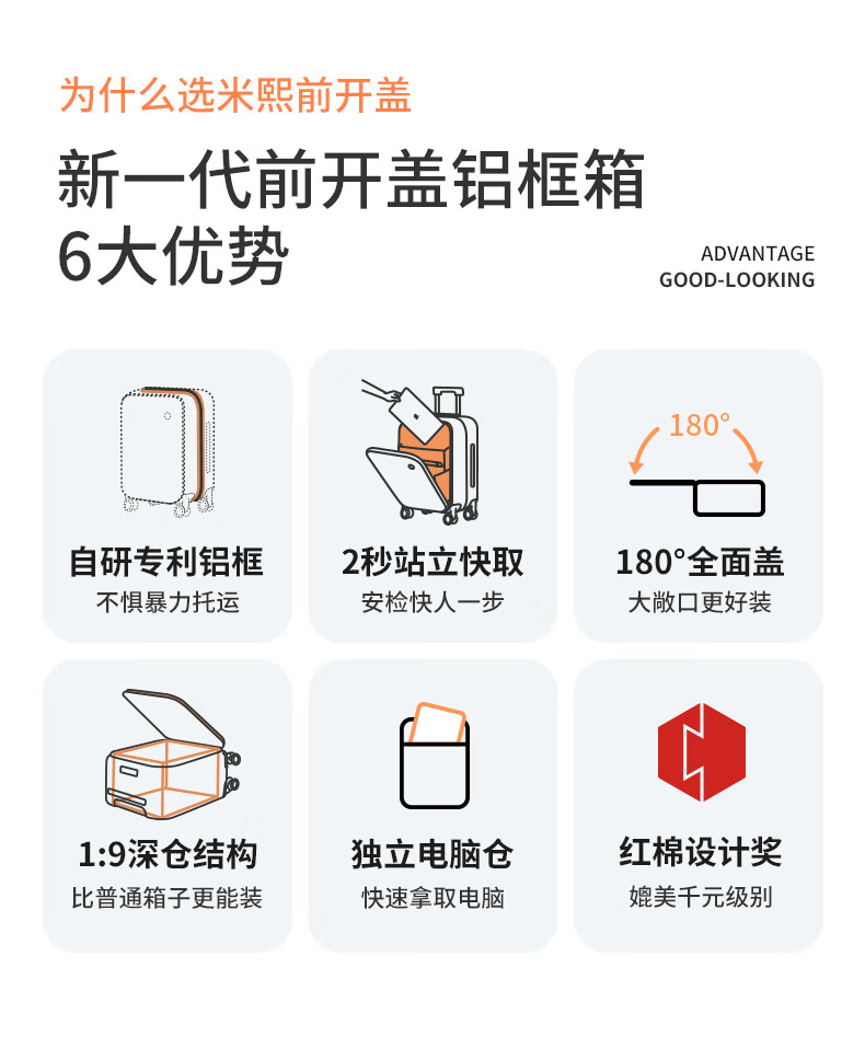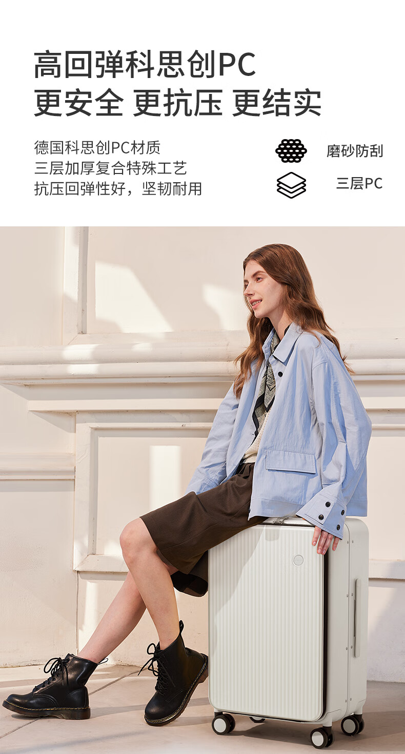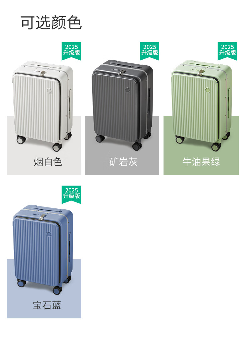 Mixi front opening aluminum frame luggage trolley box password box suitcase large capacity suitcase men's 20 inches smoke white 70