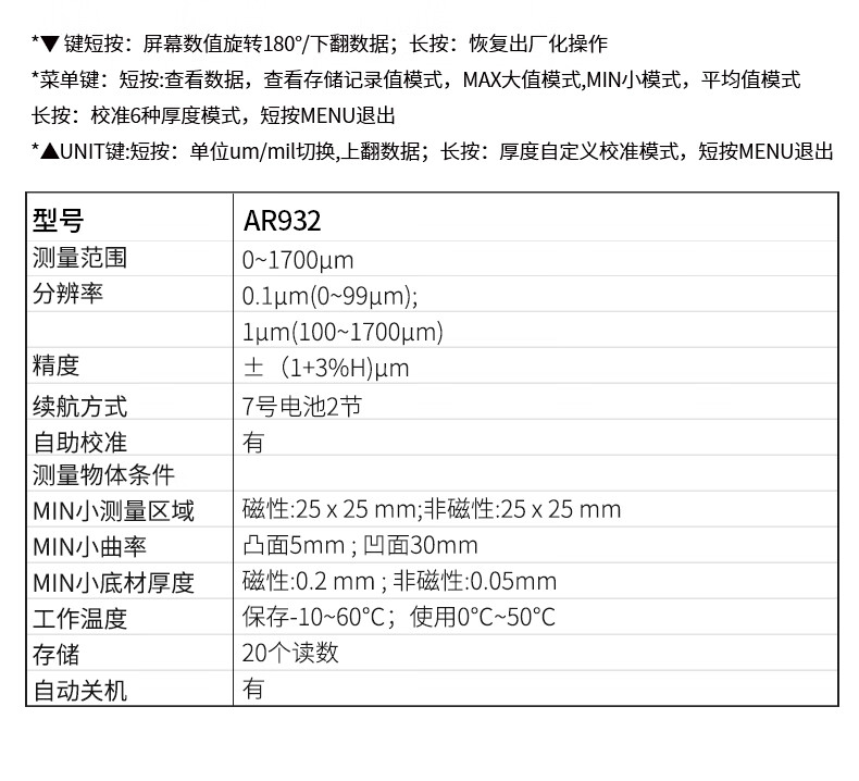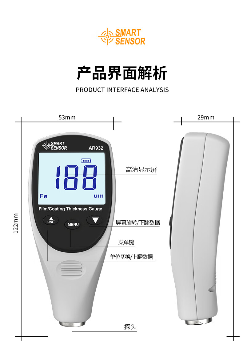 Xima AR932 coating thickness gauge, paint thickness, galvanized layer paint surface detector, automotive paint film meter