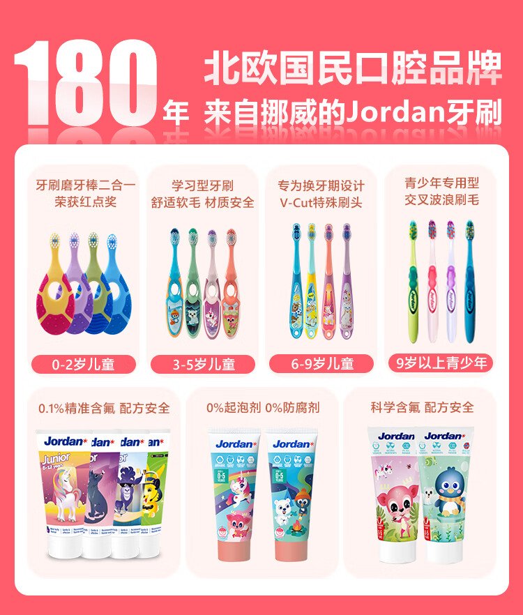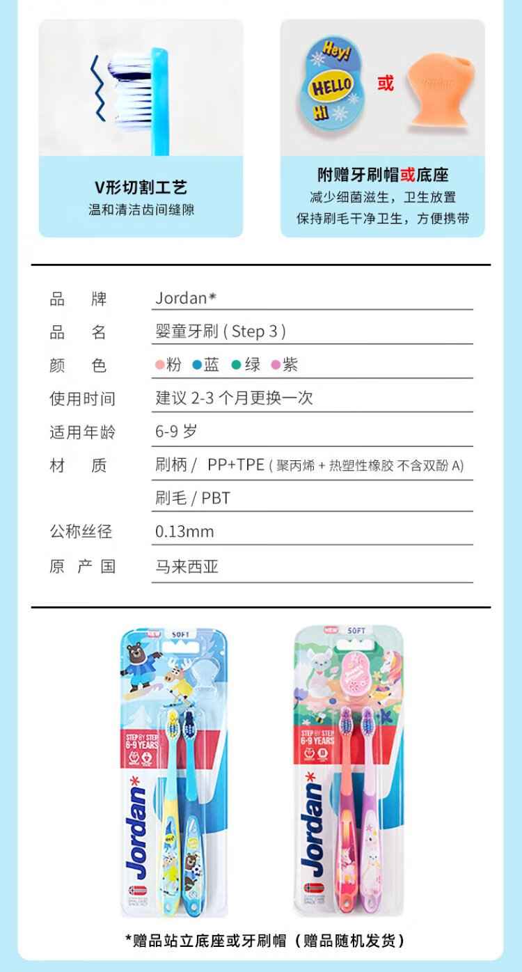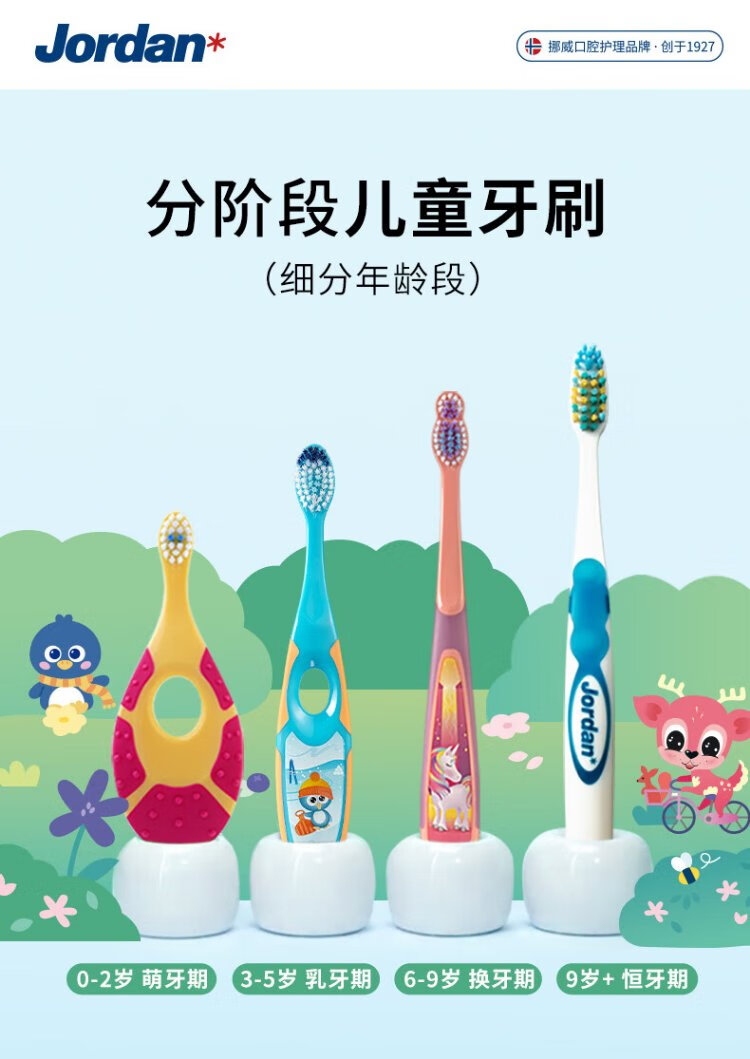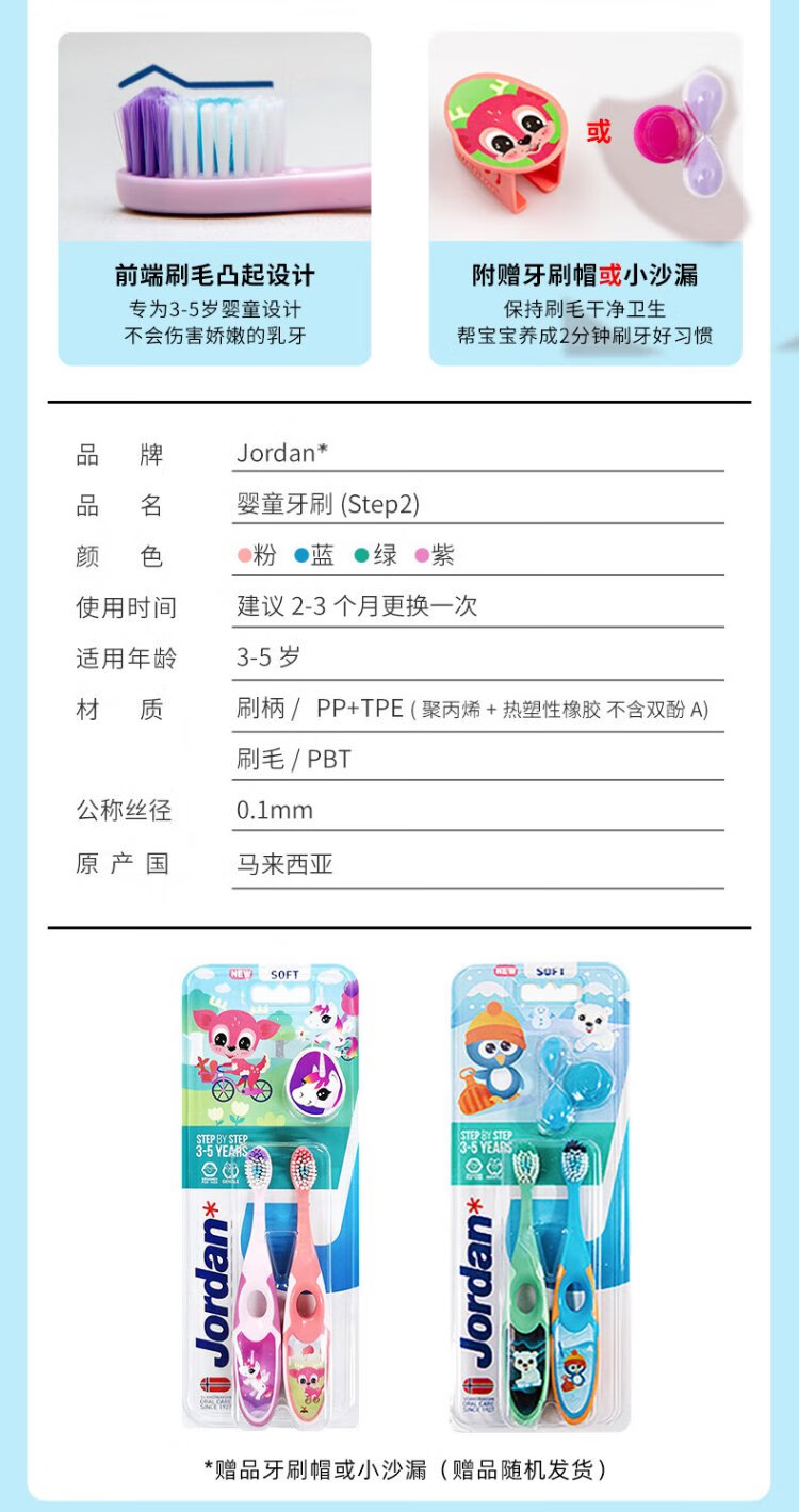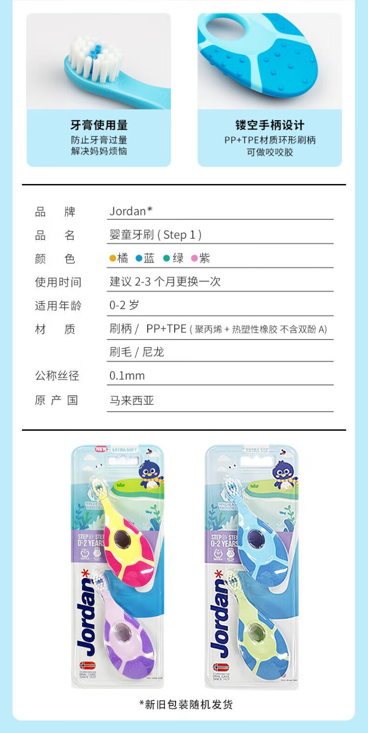 Jordan imported toothbrush for infants and children, gum protection toothbrush, 0-2 years old (single pack), random color