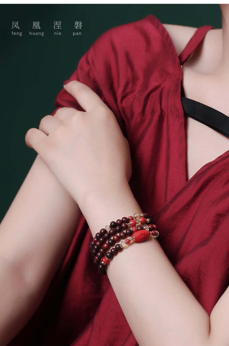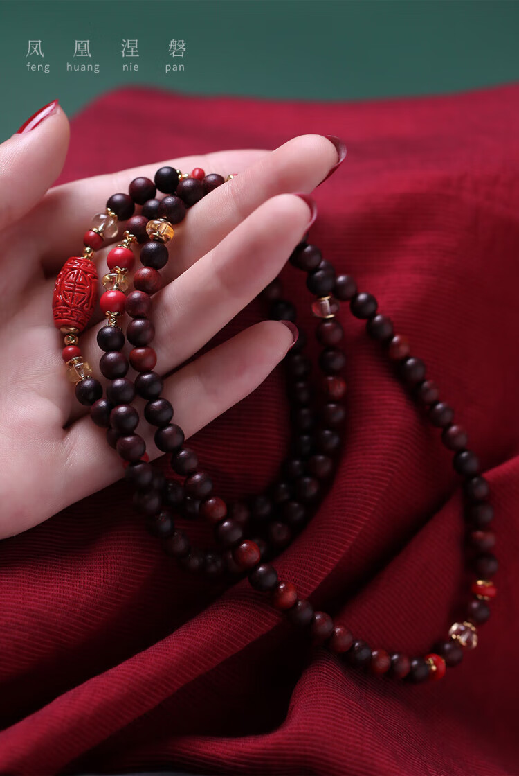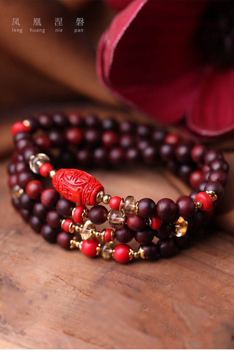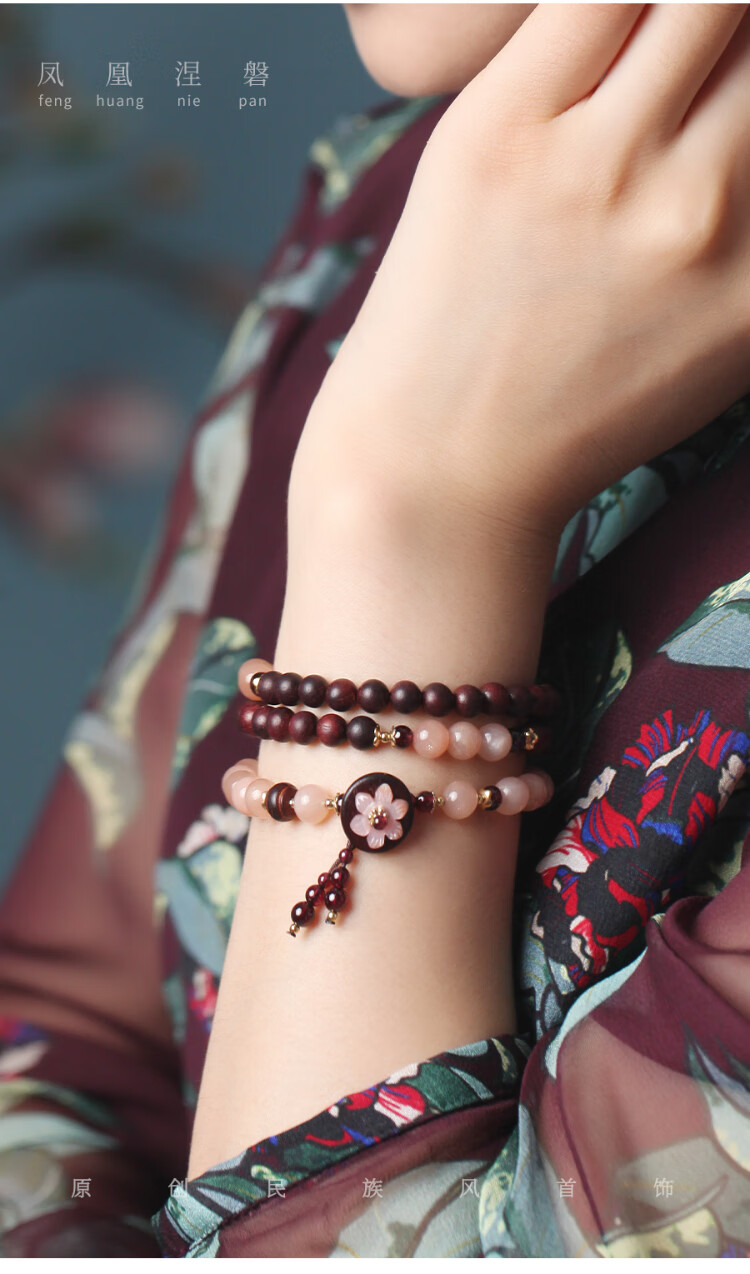 Phoenix Nirvana Small Leaf Rosewood Bracelet Women's Sandalwood Bracelet Buddha Beads Peace Beads Cultural Toy Jewelry High-End Birthday Gift for Women
