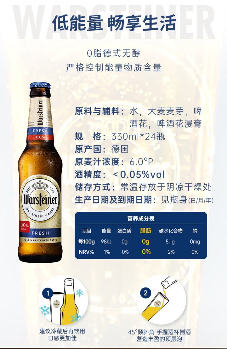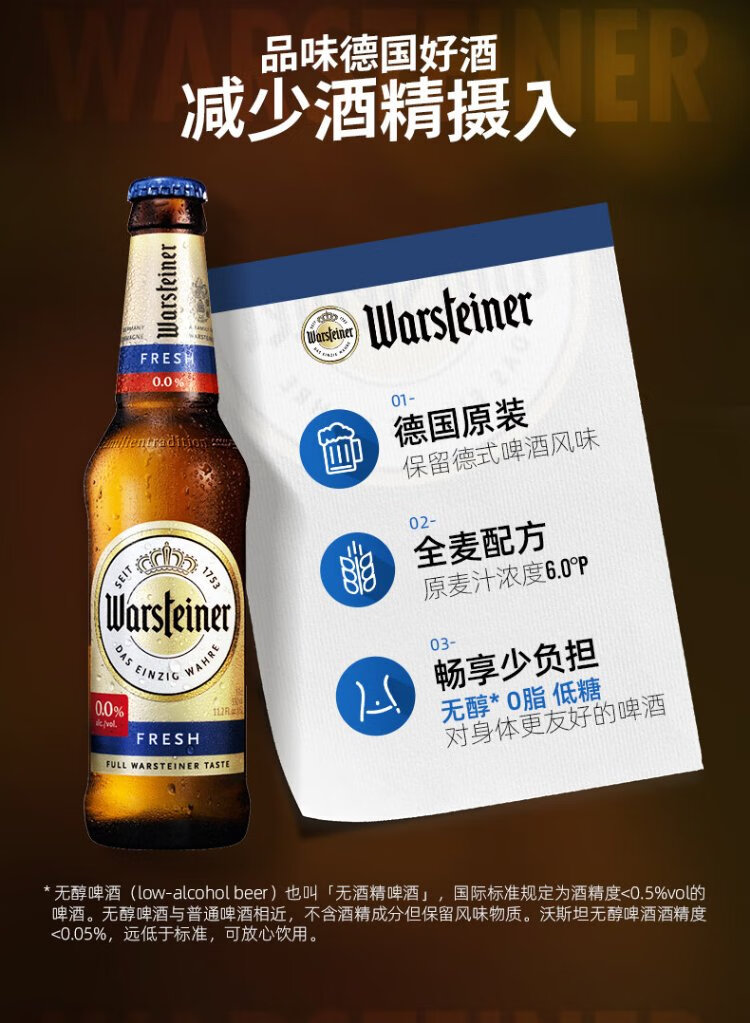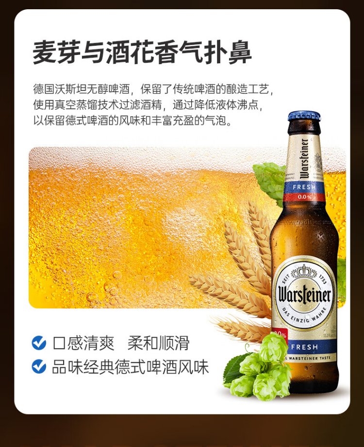 Warsteiner non-alcoholic beer 330ml*24 bottles in a box, self-drinking gift, imported from Germany, low fat, zero alcohol and low alcohol