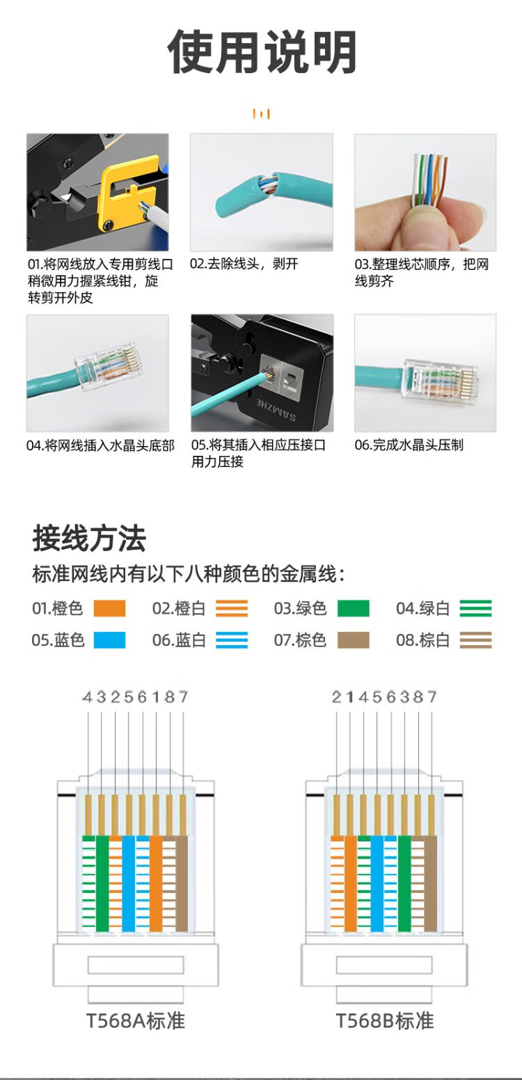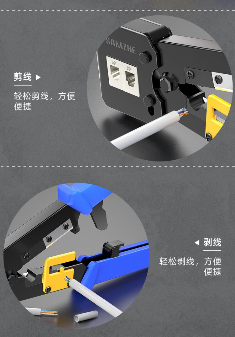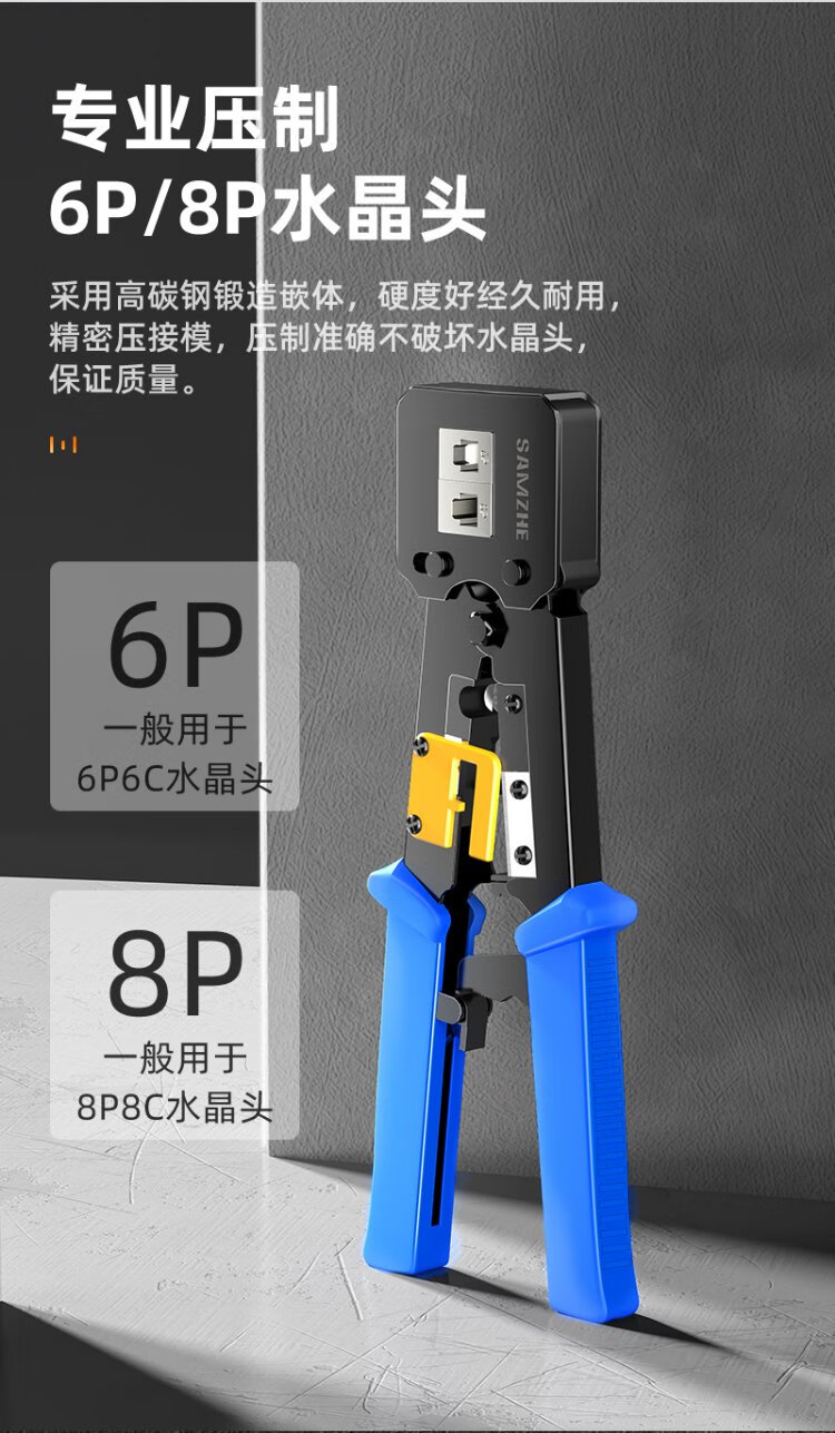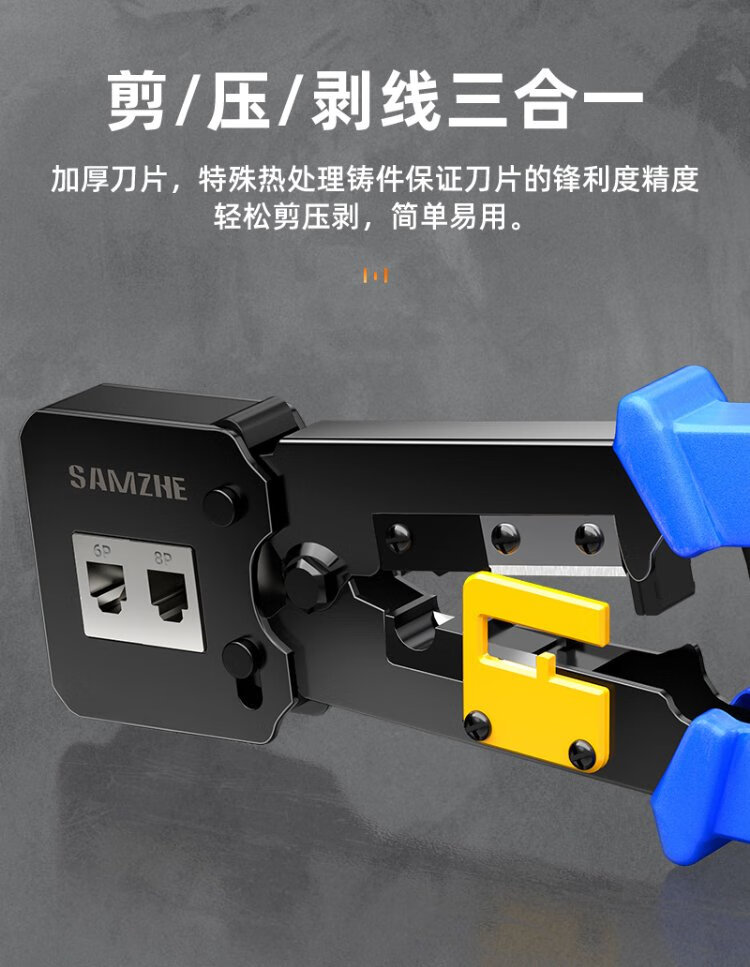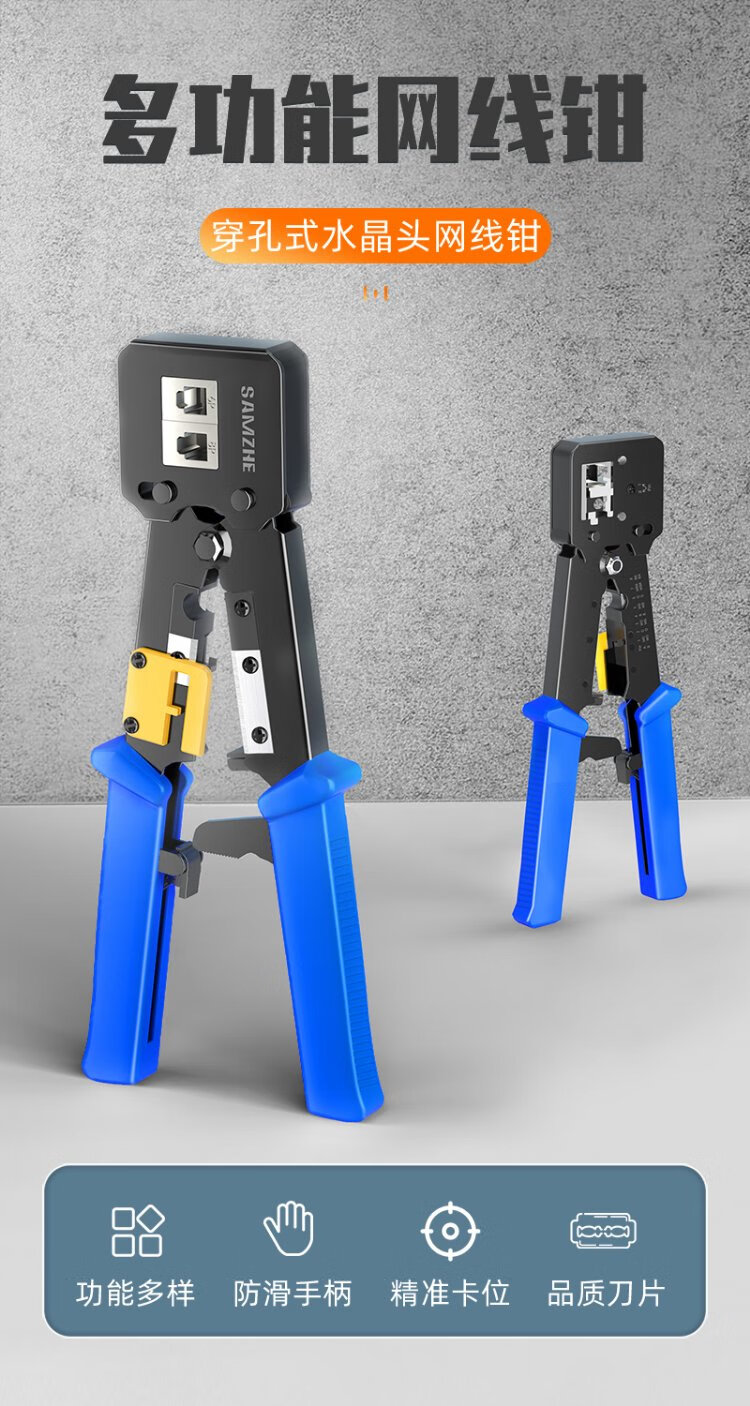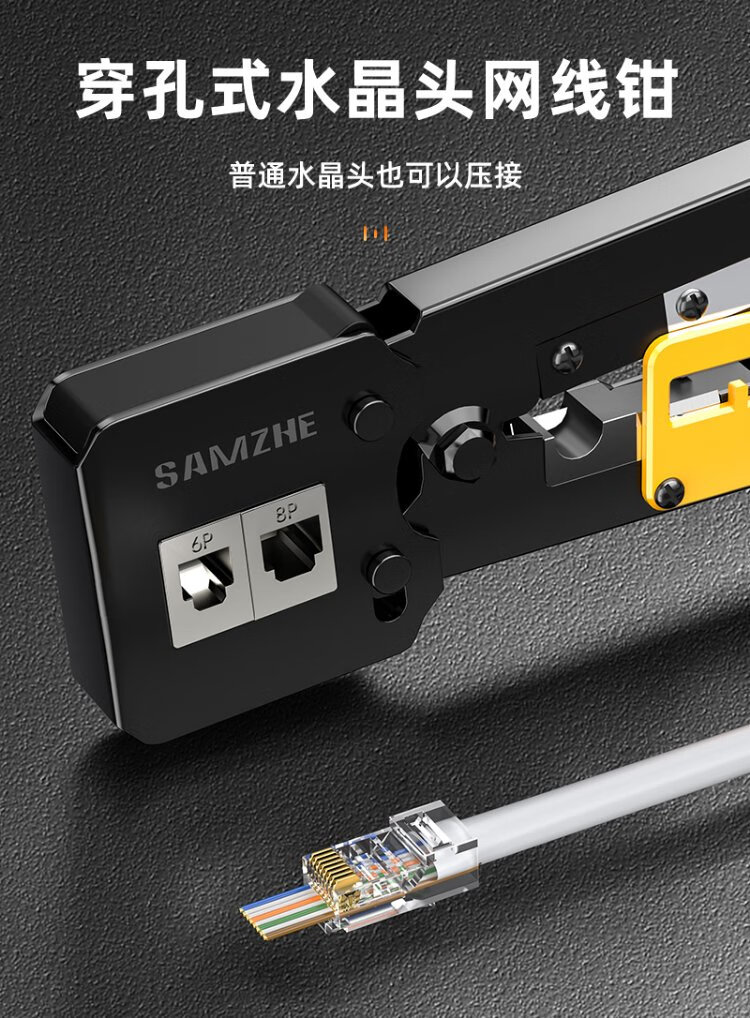 Shanze perforated network cable pliers network crystal head 8P6P pressure stripping shear pliers home network through hole crimping tool SZ-376Z