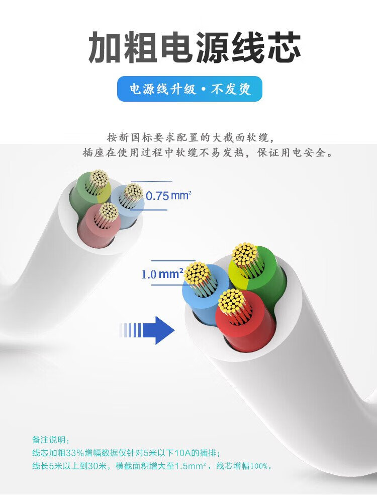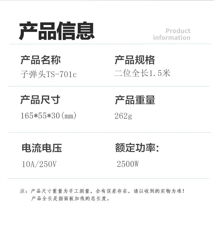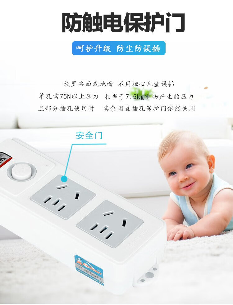 Bullet head new national standard safety socket/socket strip/strip strip/socket strip/terminal strip/trailer board extension cord master control switch 2 positions total length 1.5 meters TS-701c