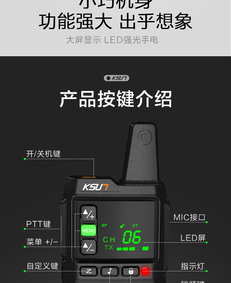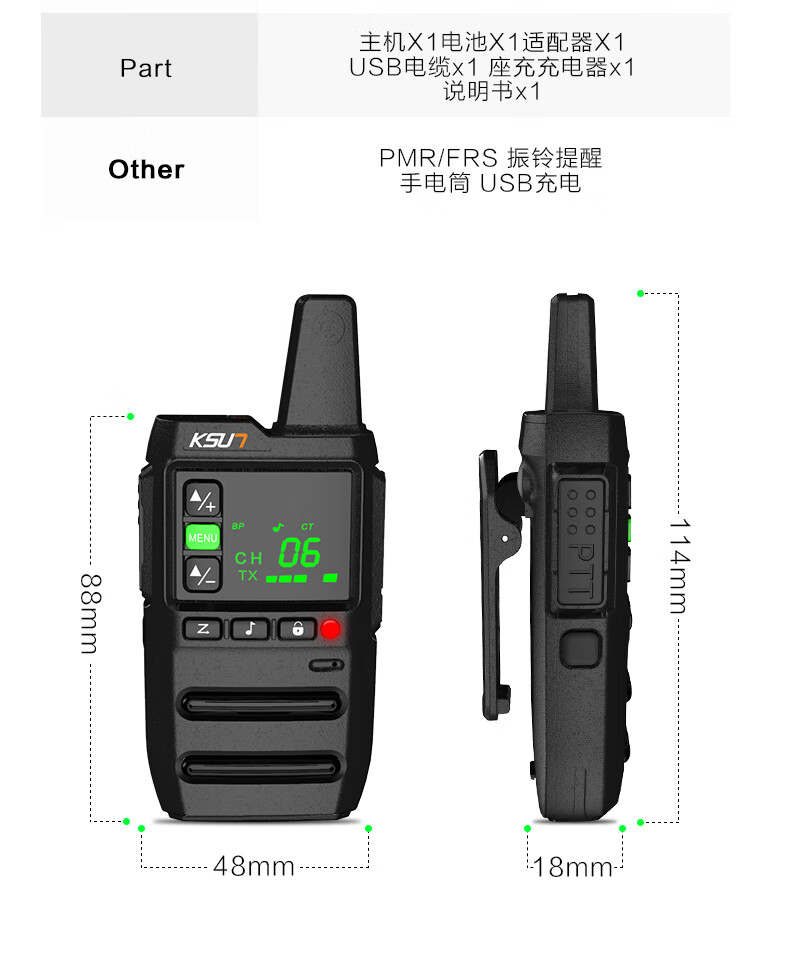 KSUN TFSI walkie-talkie small body portable super endurance screen display license-free anti-interference walkie-talkie X-GZ20