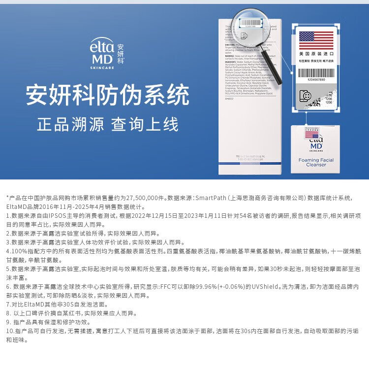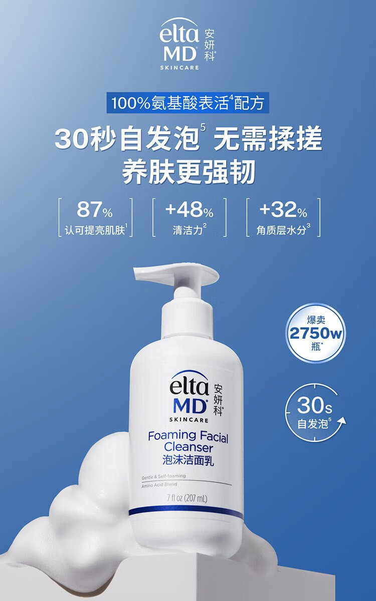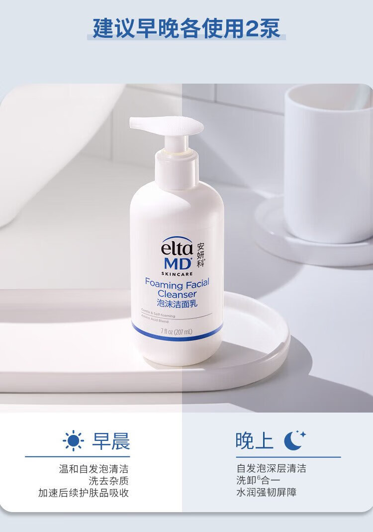 Elta MD Anyenko Facial Cleanser for Men and Women Amino Acid Sensitive Muscle Foaming Cleanser 207ml*2 Gentle cleansing and sunscreen removal