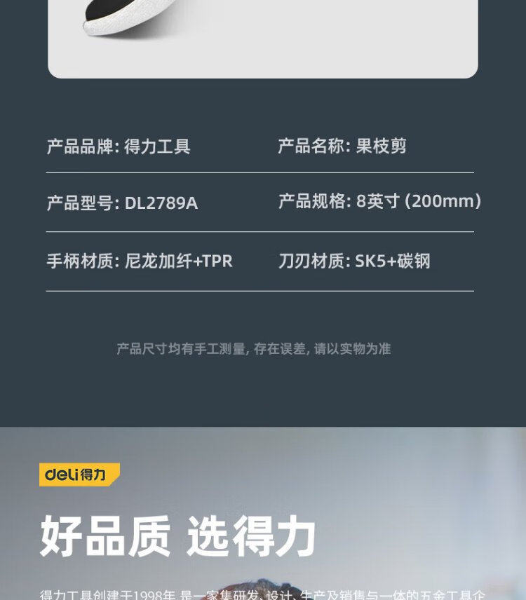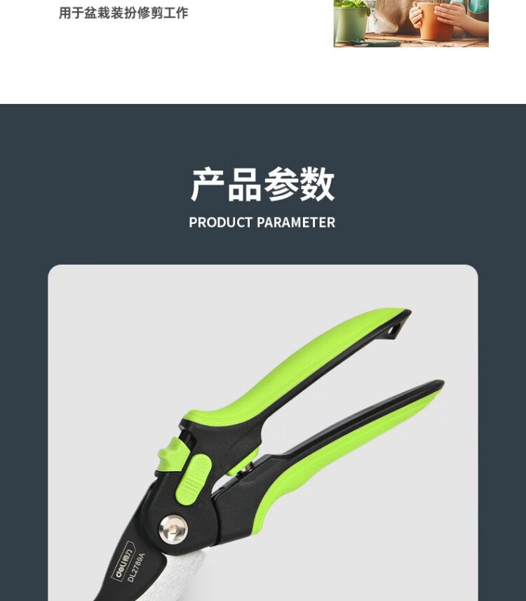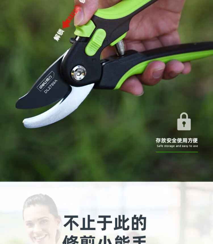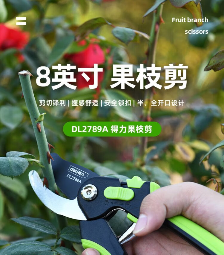 Deli labor-saving fruit branch shears, gardening pruners, branch pruners, household pliers, pruning shears, opening adjustable 8 inches