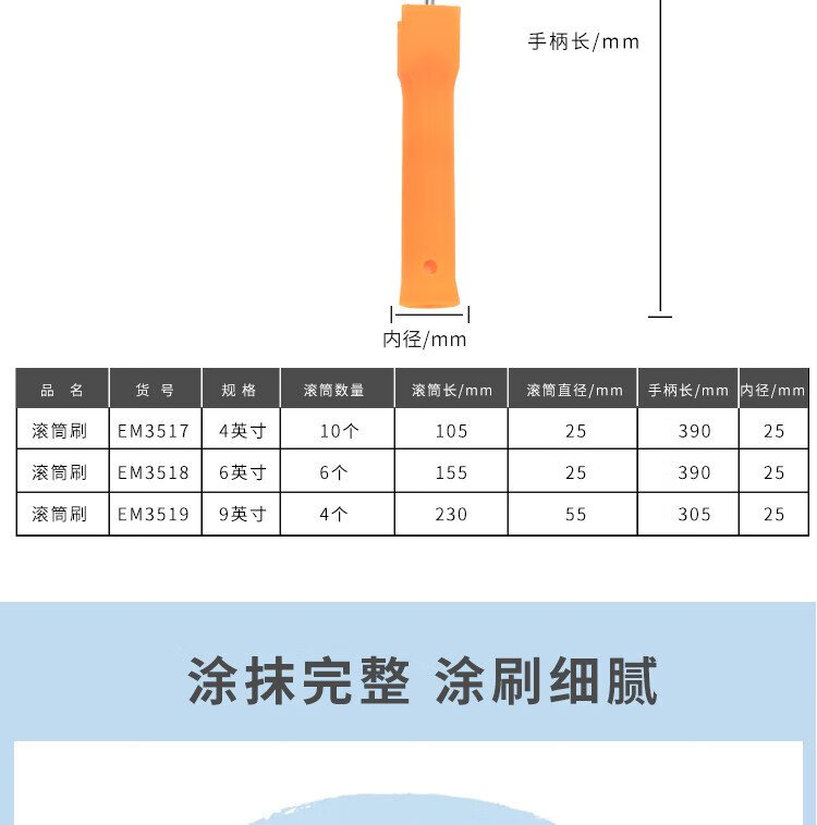 Kraftwell paint roller brush 4 inches 10 cores latex paint thumb roller brush wall brush tool EM3517
