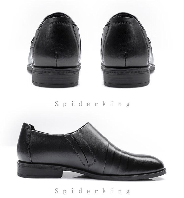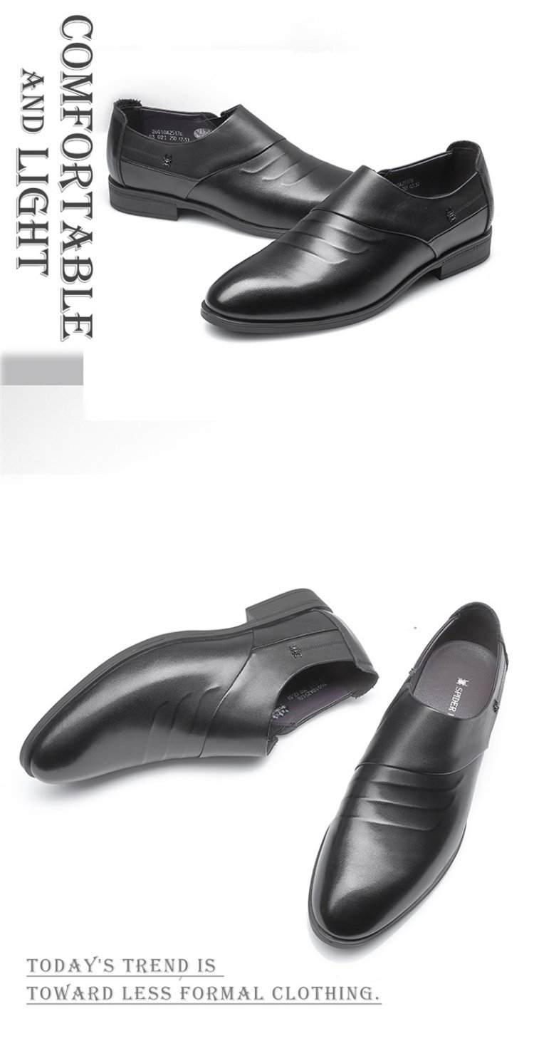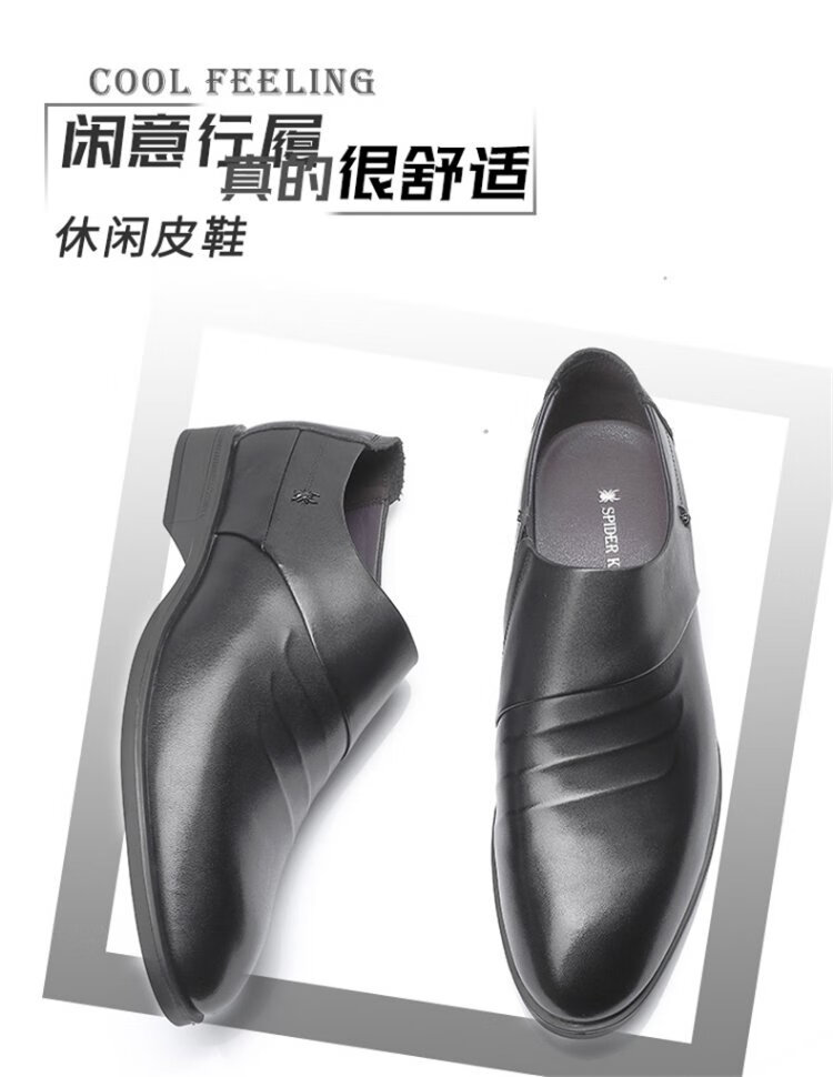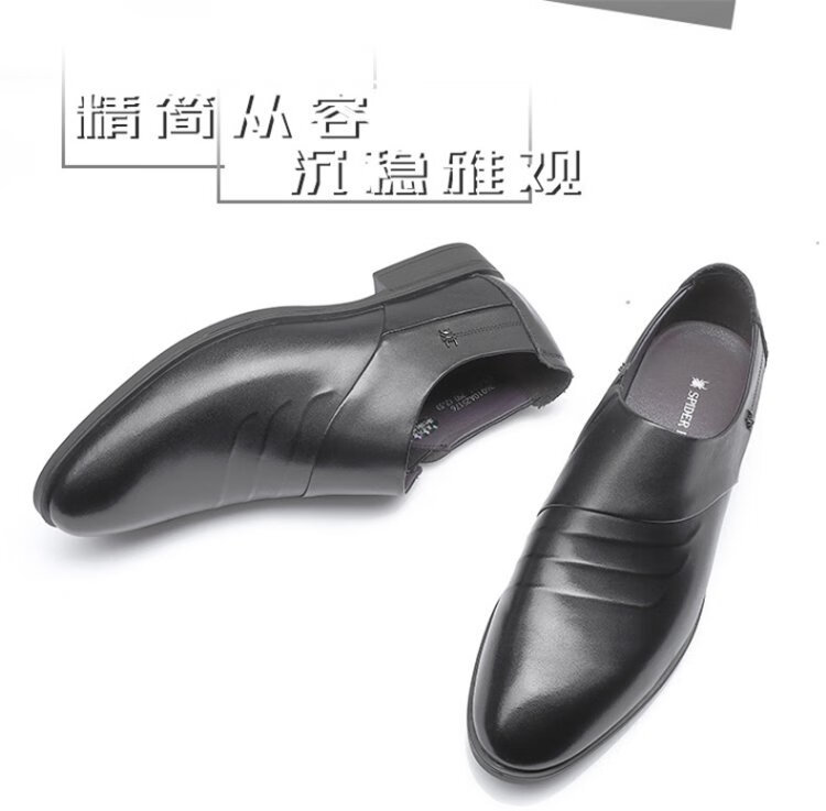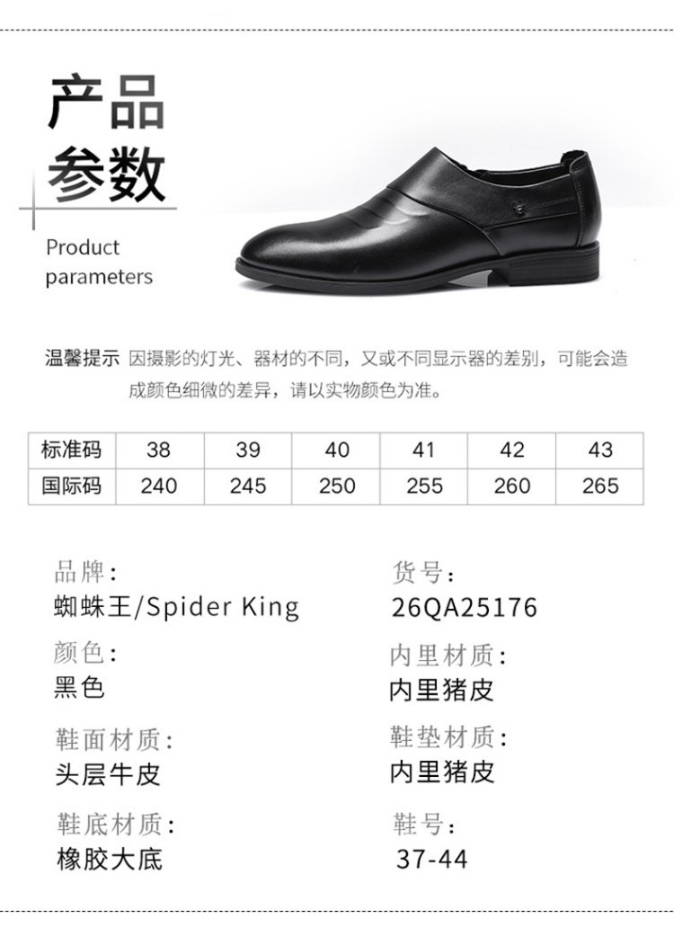 SPIDER KING leather shoes men's British cowhide business formal casual men's shoes slip-on low-top pointed toe wedding shoes black 40