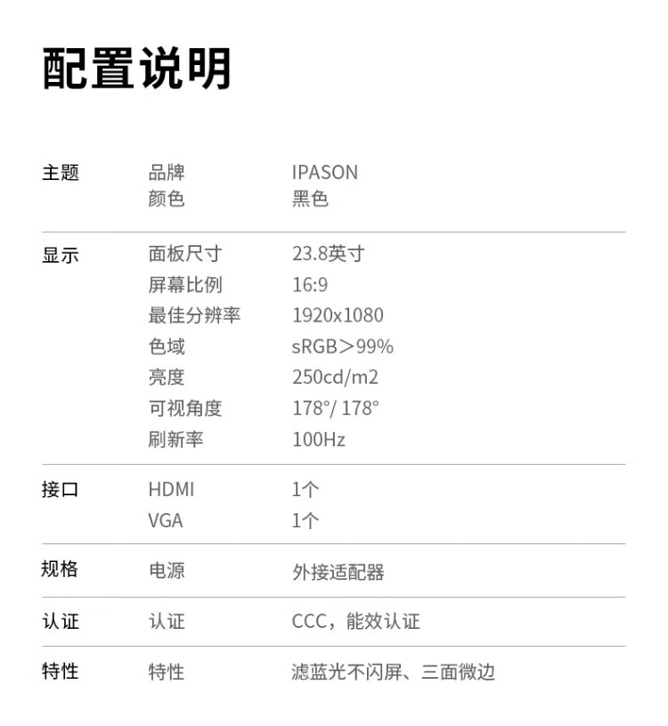 Climbing 23.8-inch 1080P full HD flicker-free 100HZ LED desktop computer monitor VGA+HDMI