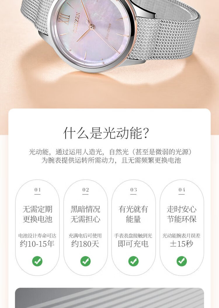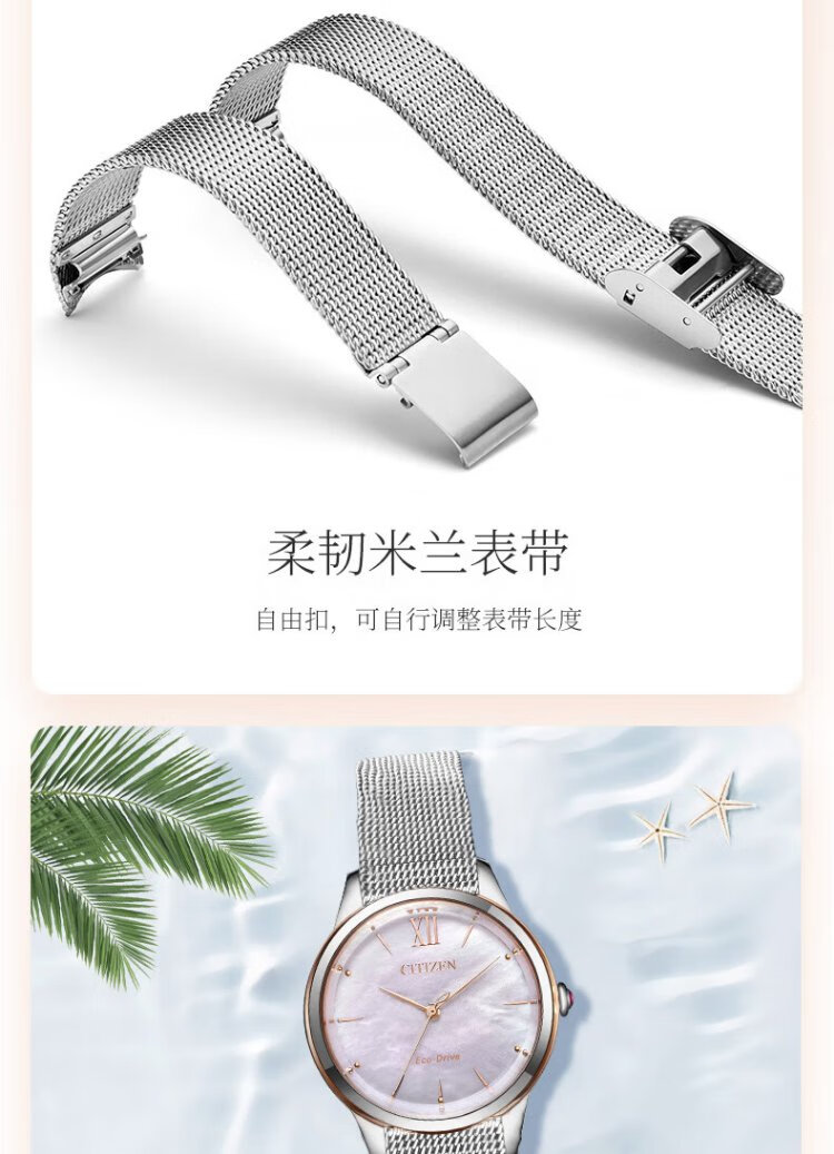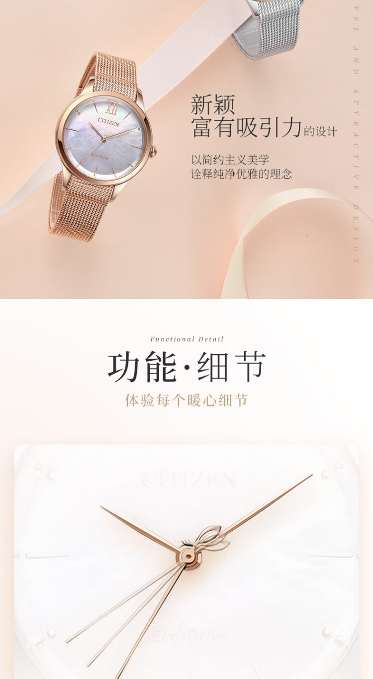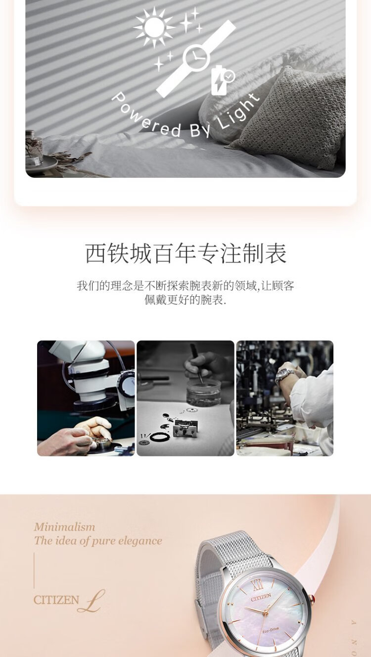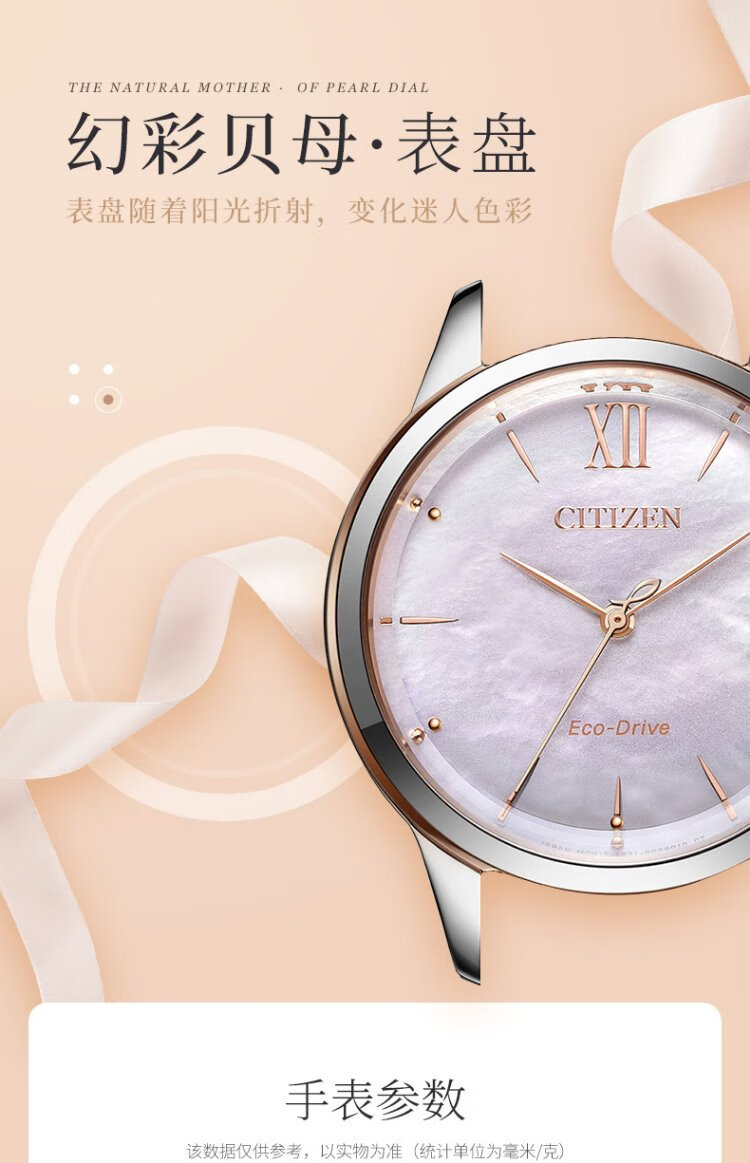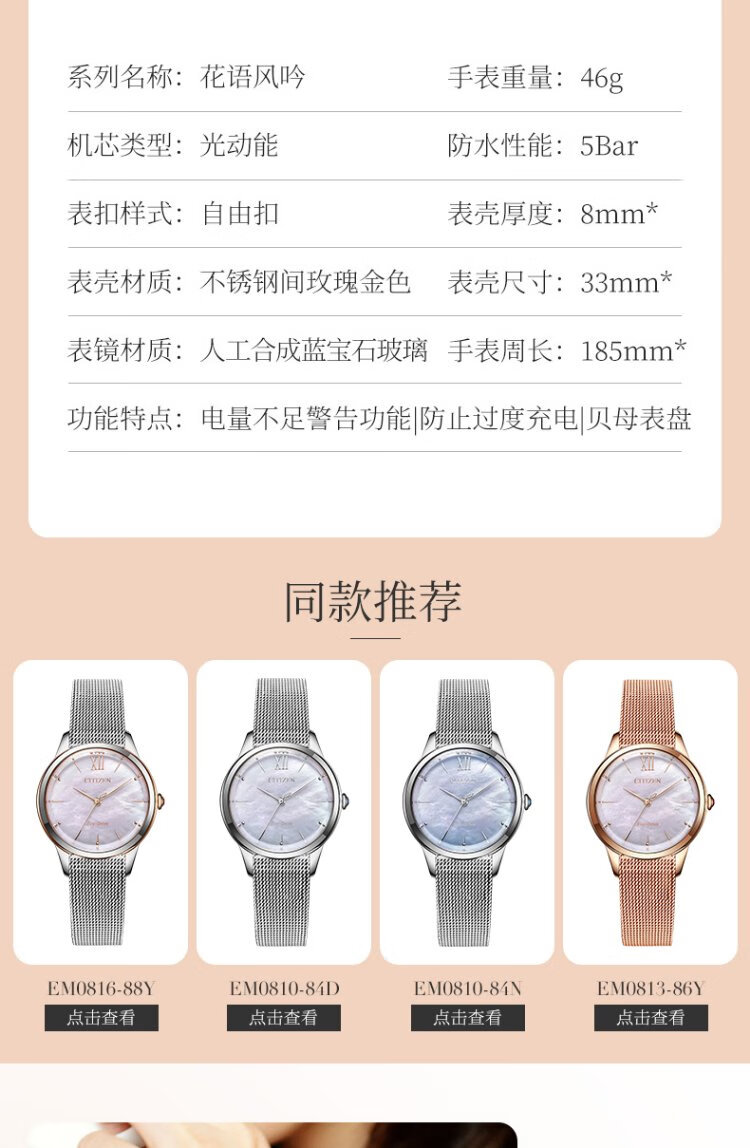 CITIZEN watch women's Japanese and Korean watch L series light kinetic energy mother-of-pearl steel belt student New Year gift EM0816-88Y