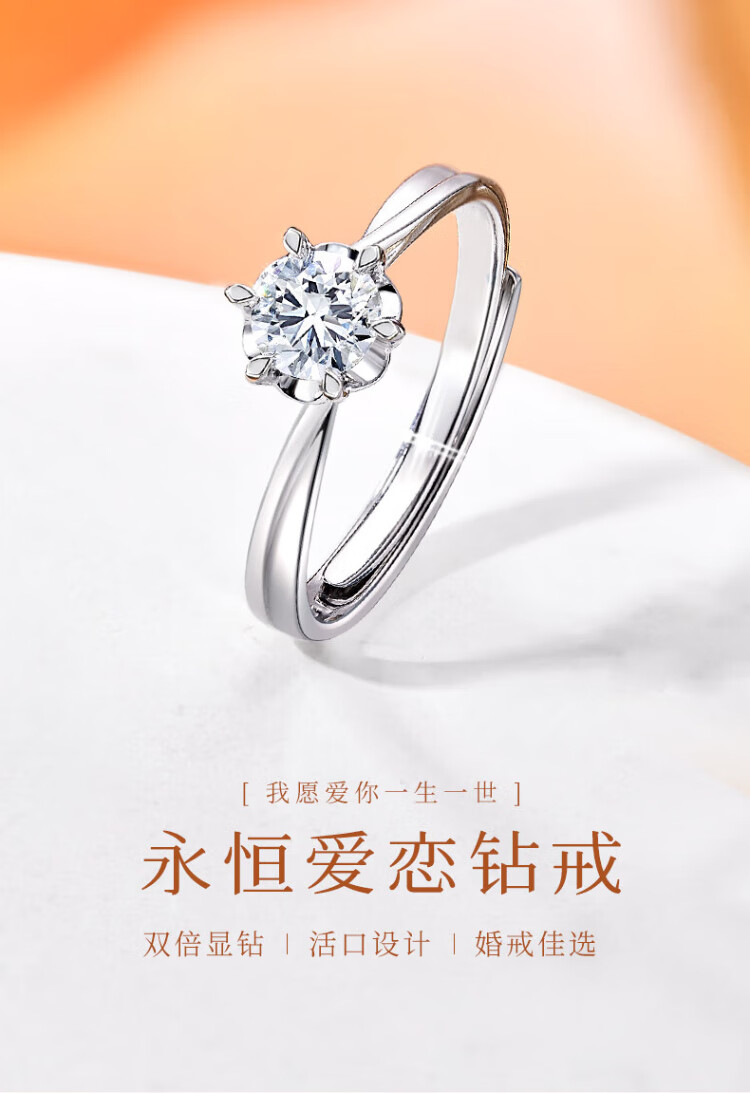Diamond Birthday Gift Platinum Snowflake Live Adjustable Diamond Ring Wedding Proposal Diamond Ring