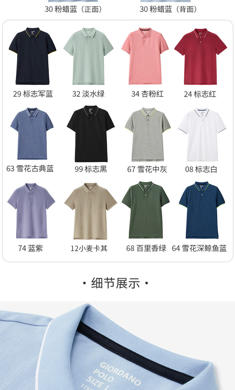 Giordano Polo shirt men's honeycomb mesh pique cloth men's lapel top polo shirt men's short sleeve 01011425