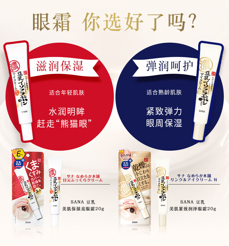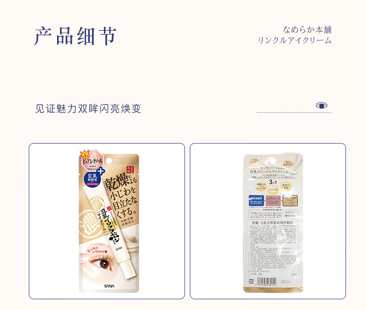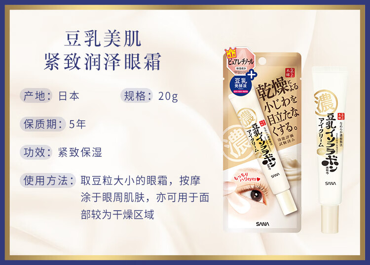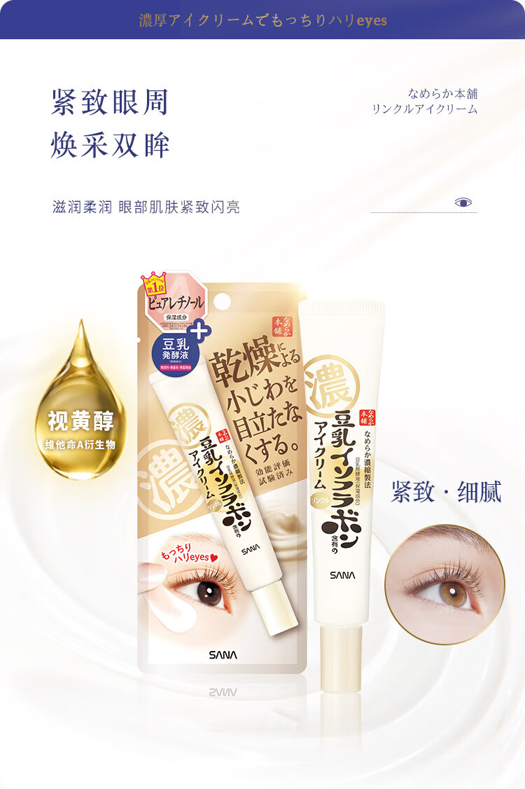 SANA Soy Milk Firming Eye Cream Women's Vitamin A Retinol Eye Lifting Essence 20g (valid until 2027.8.16)